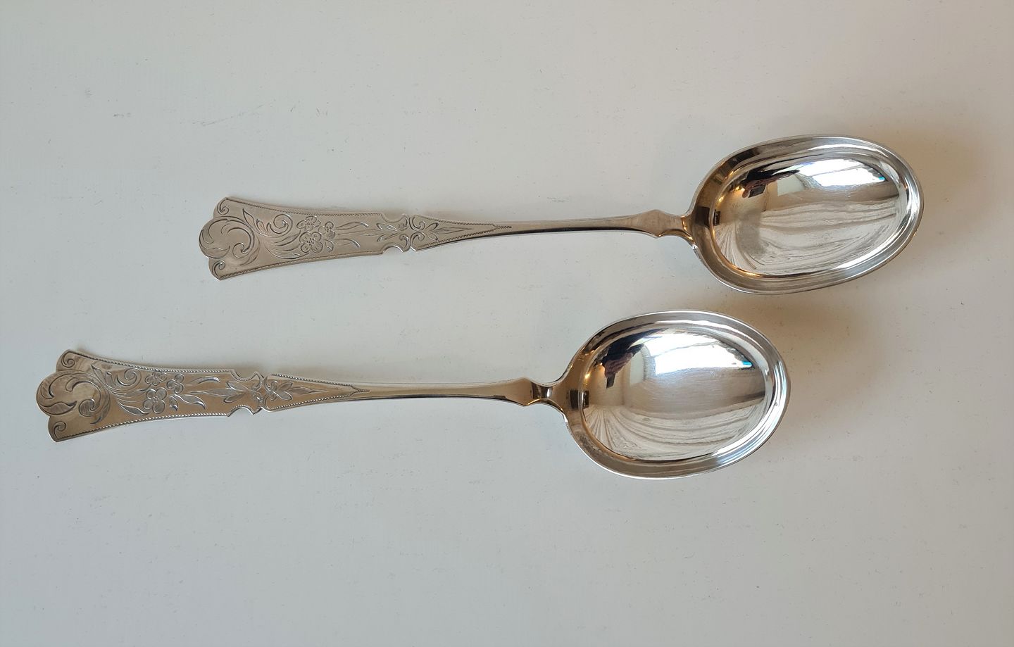 Par sølvskeer af Emanuel Christensen 1820-1866 Århus