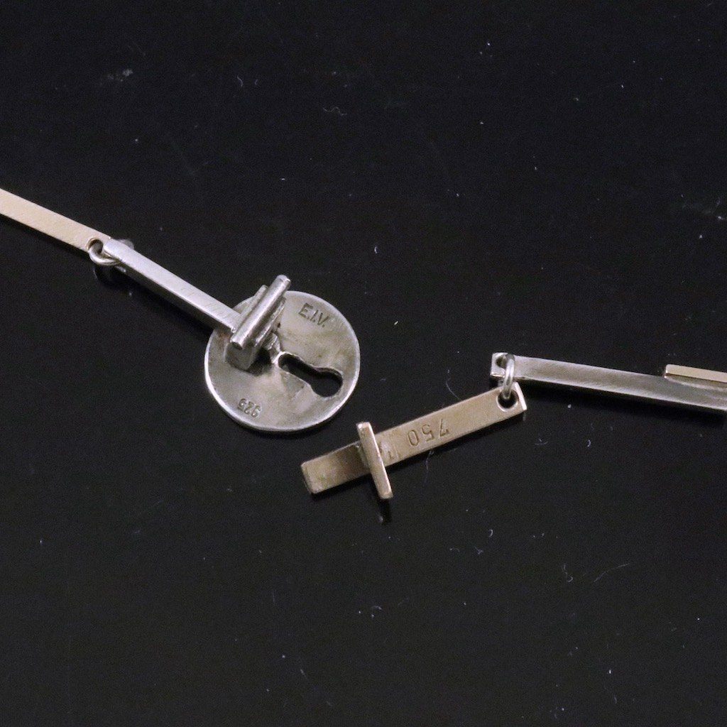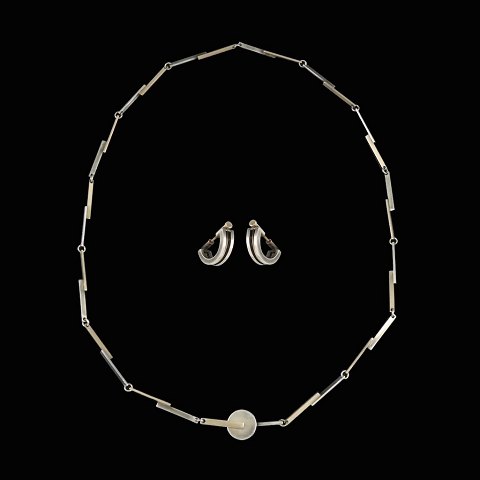 Erik Ingomar Vangsgaard. Haslkæde og øreringe i sterlingsølv og 18k guld.