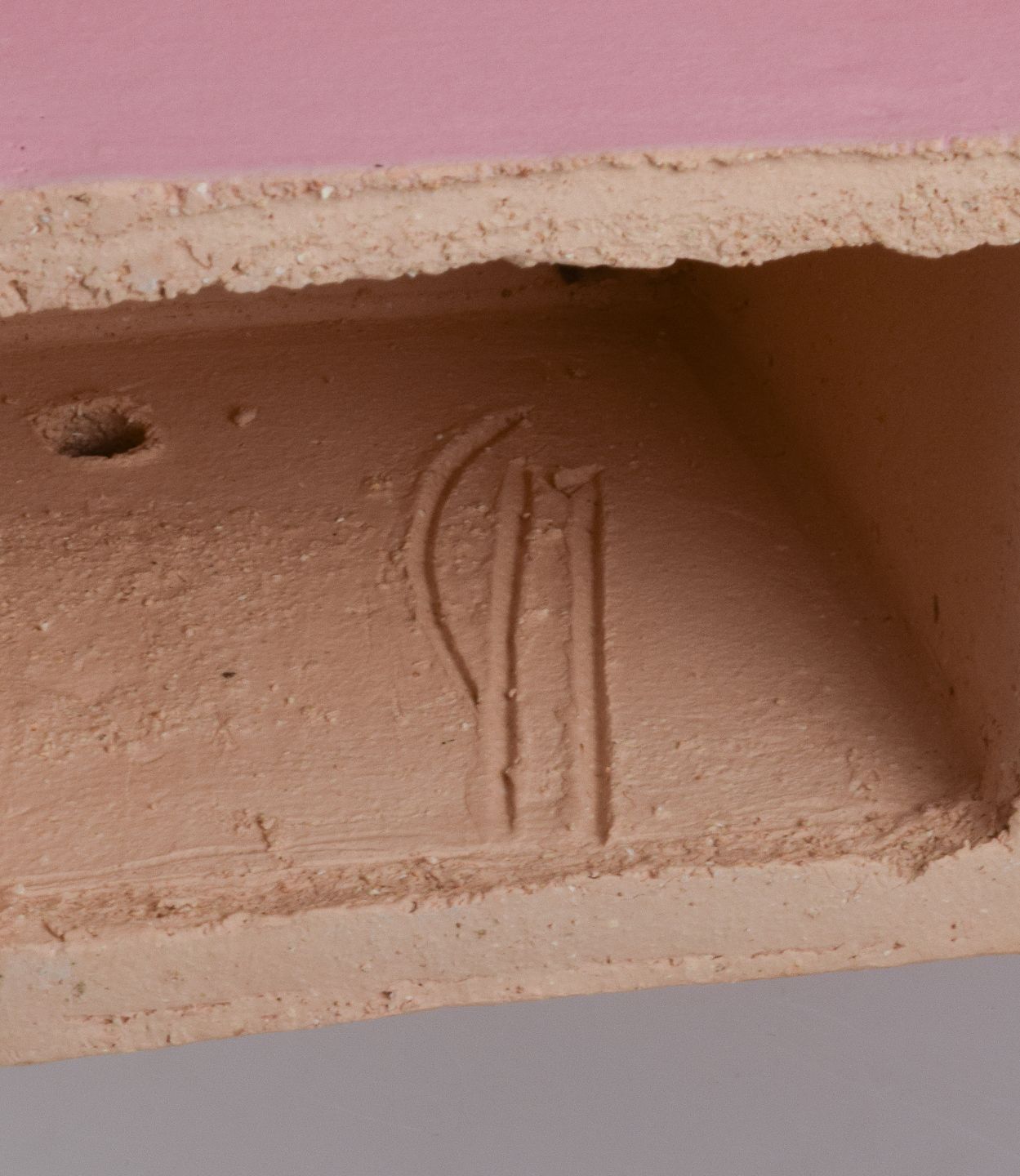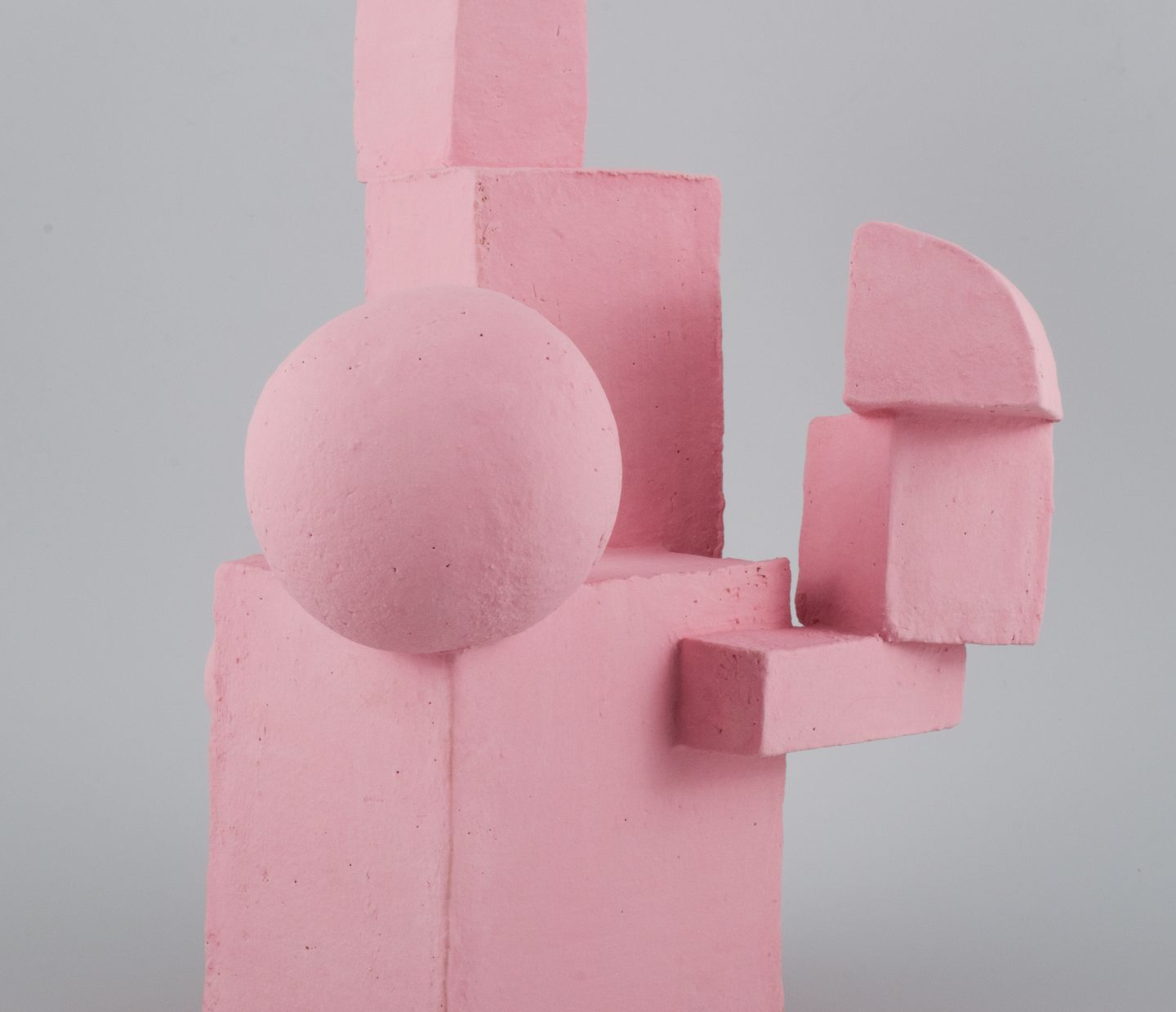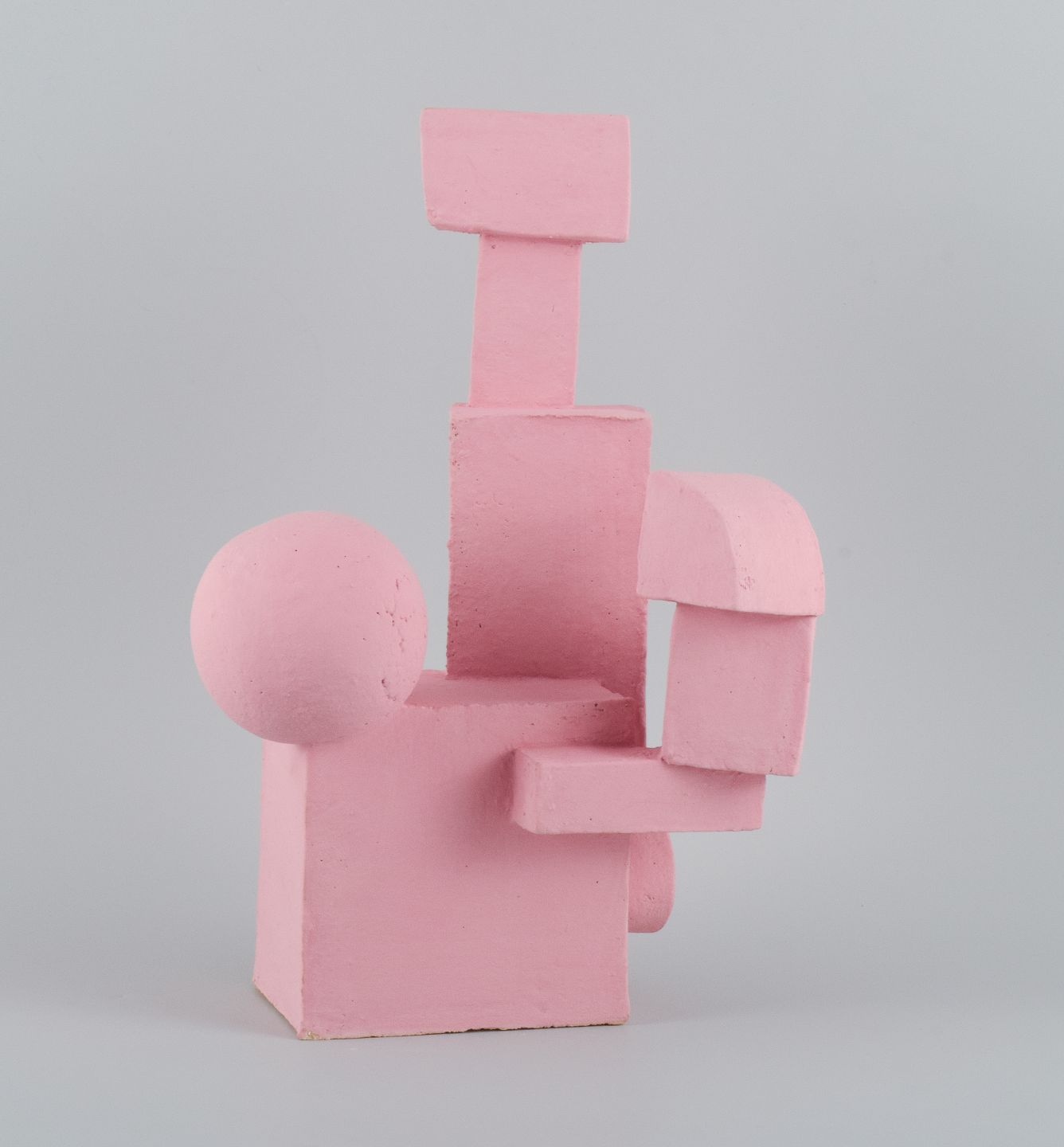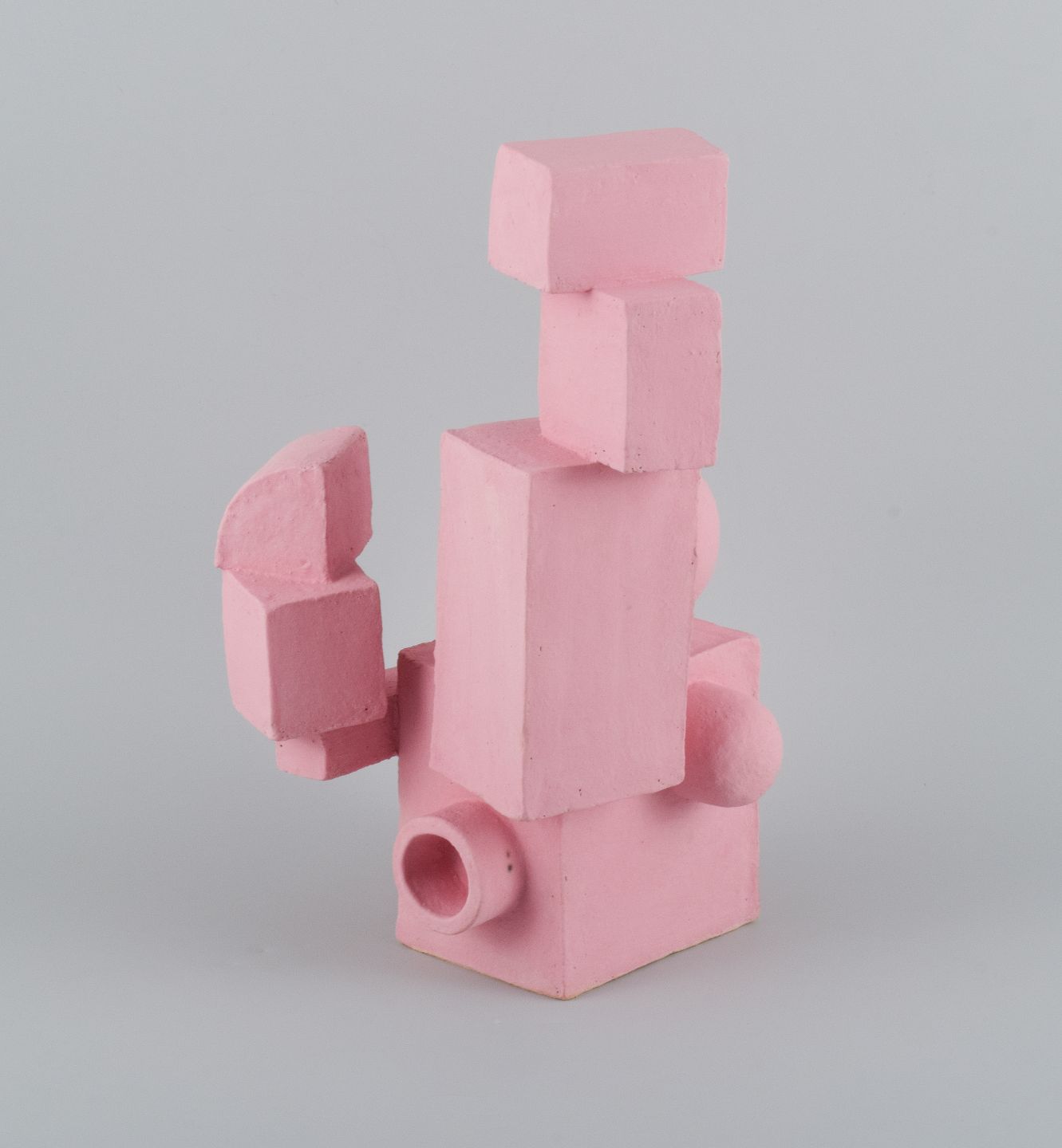 Cubist stoneware sculpture. Unique. Soft pink, matte glaze.