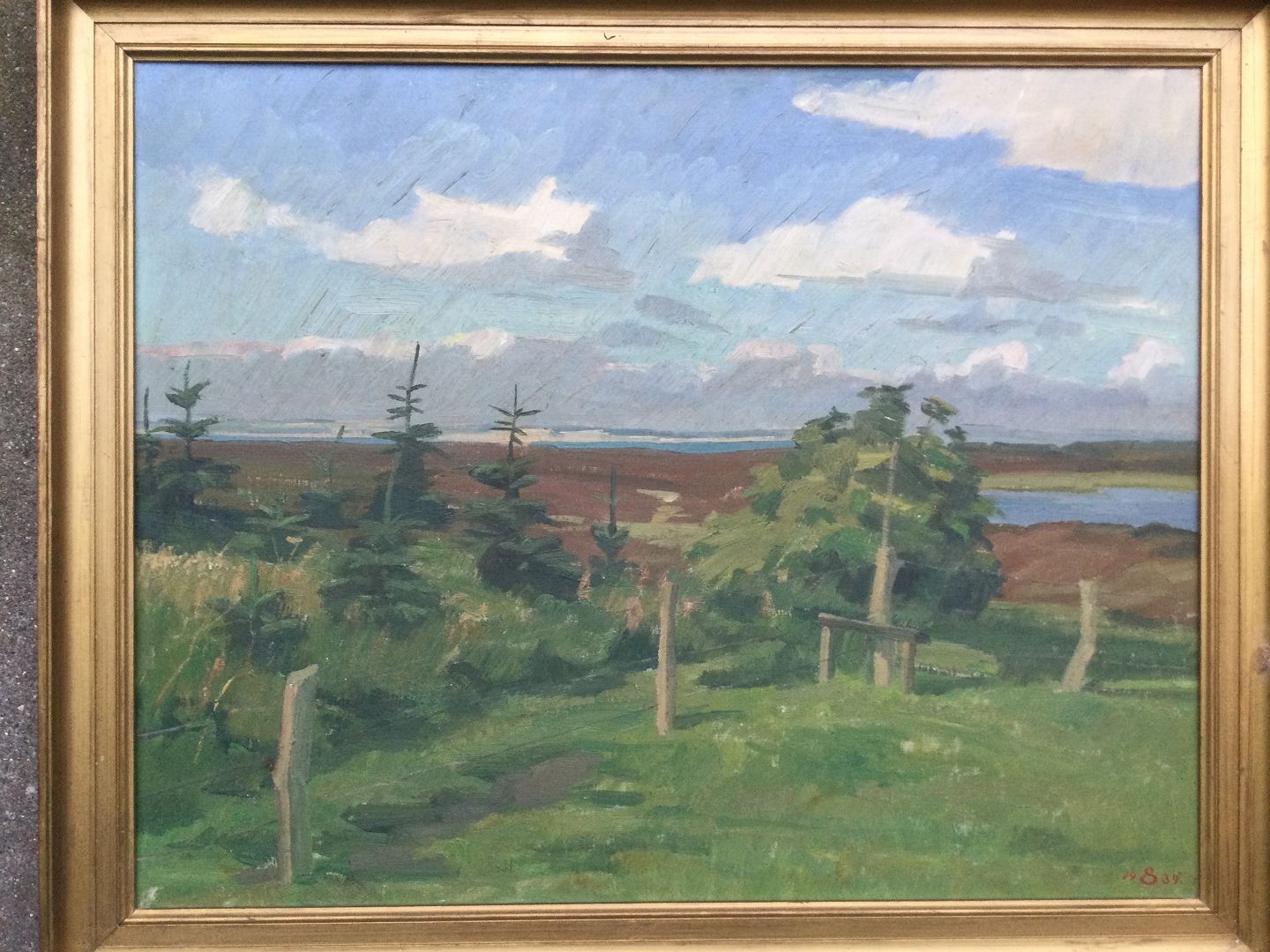 Maleri af Edvard Sarvig - Landskab ved Søndersø, Værløse 1939.