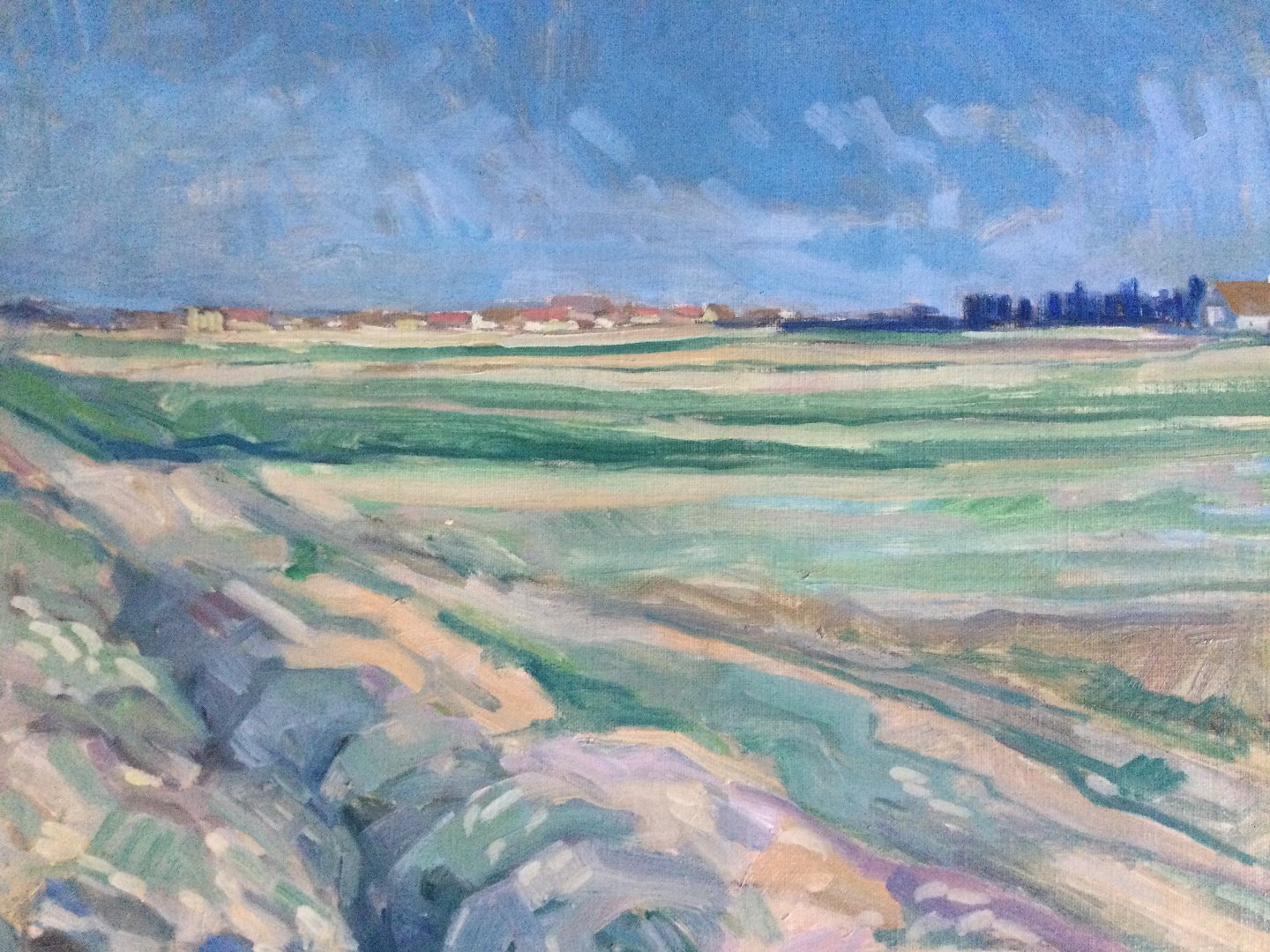 Maleri af Erik Nørgaard - Vue ind over Skagen 1953.