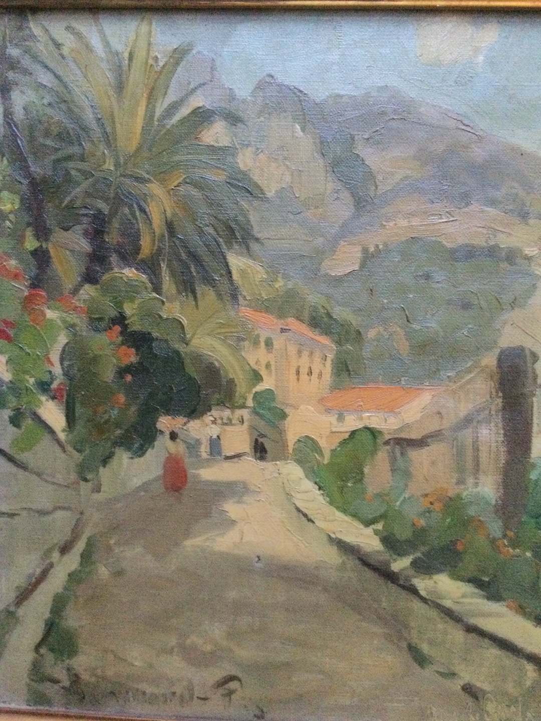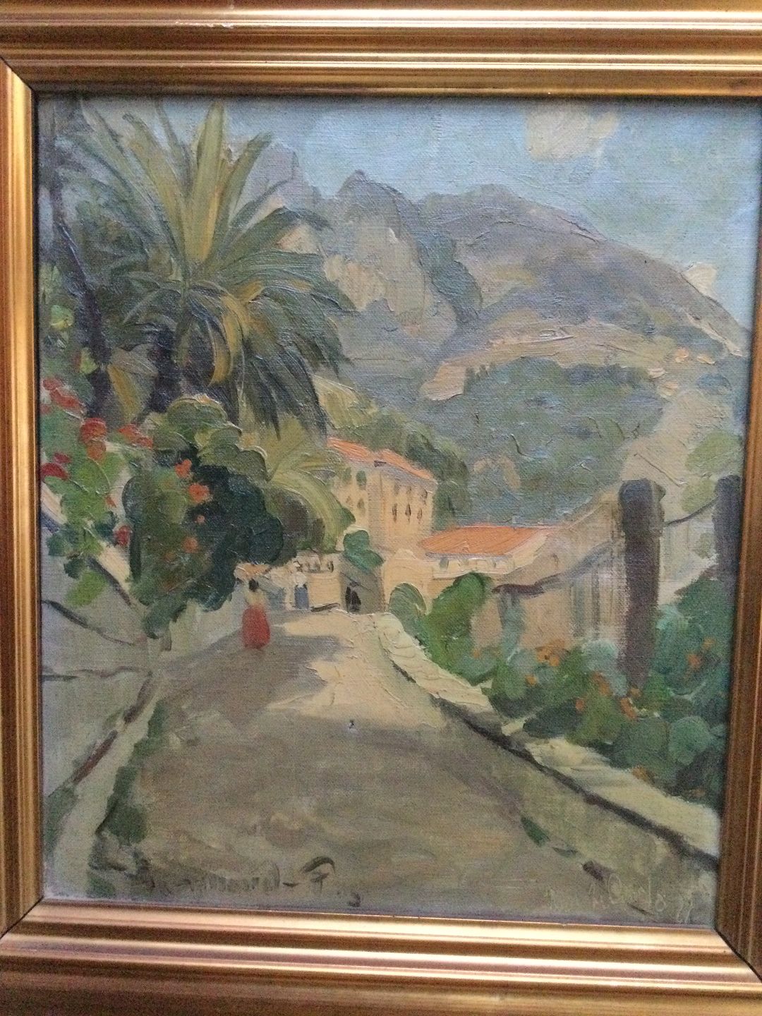 Text available in Danish: Maleri af Aage Bernhard-Frederiksen - Parti fra Monte Carlo, Monaco 1921.