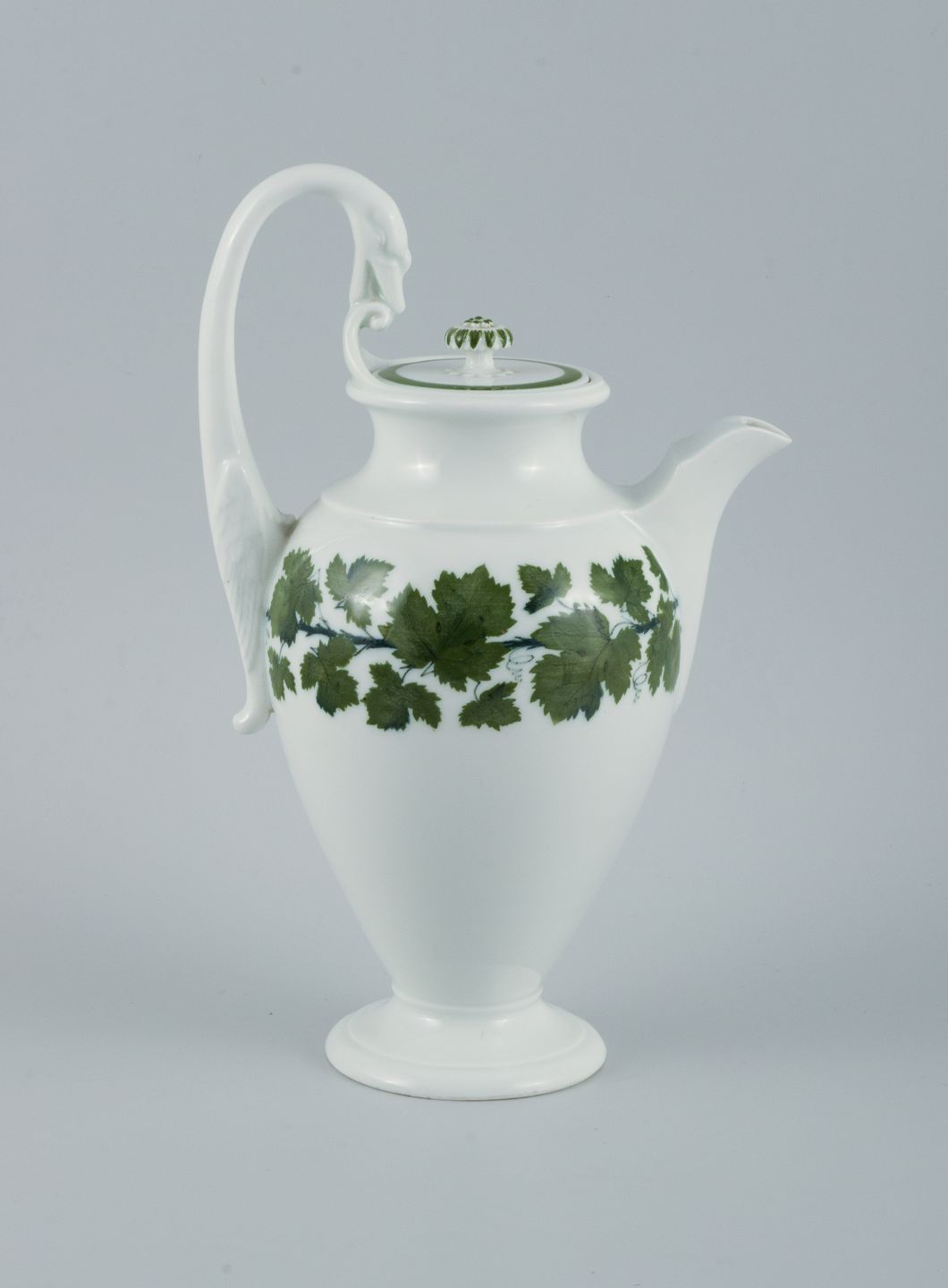 Meissen Green Ivy Vine. Coffee pot in hand-painted porcelain.