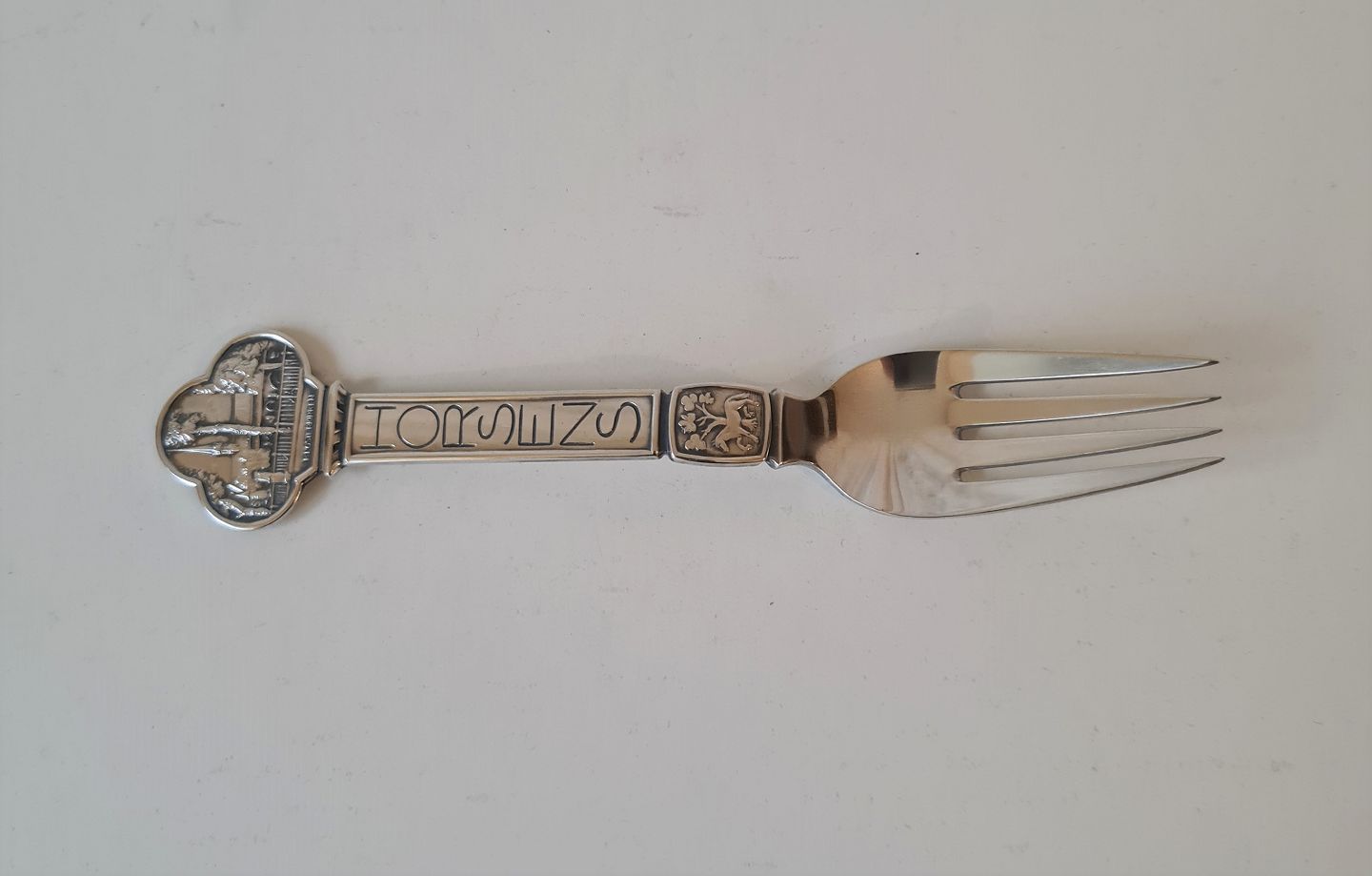 Barnegaffel i sølv med Horsens byvåben fra 1939