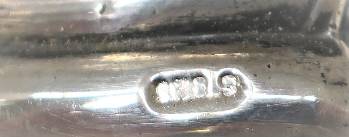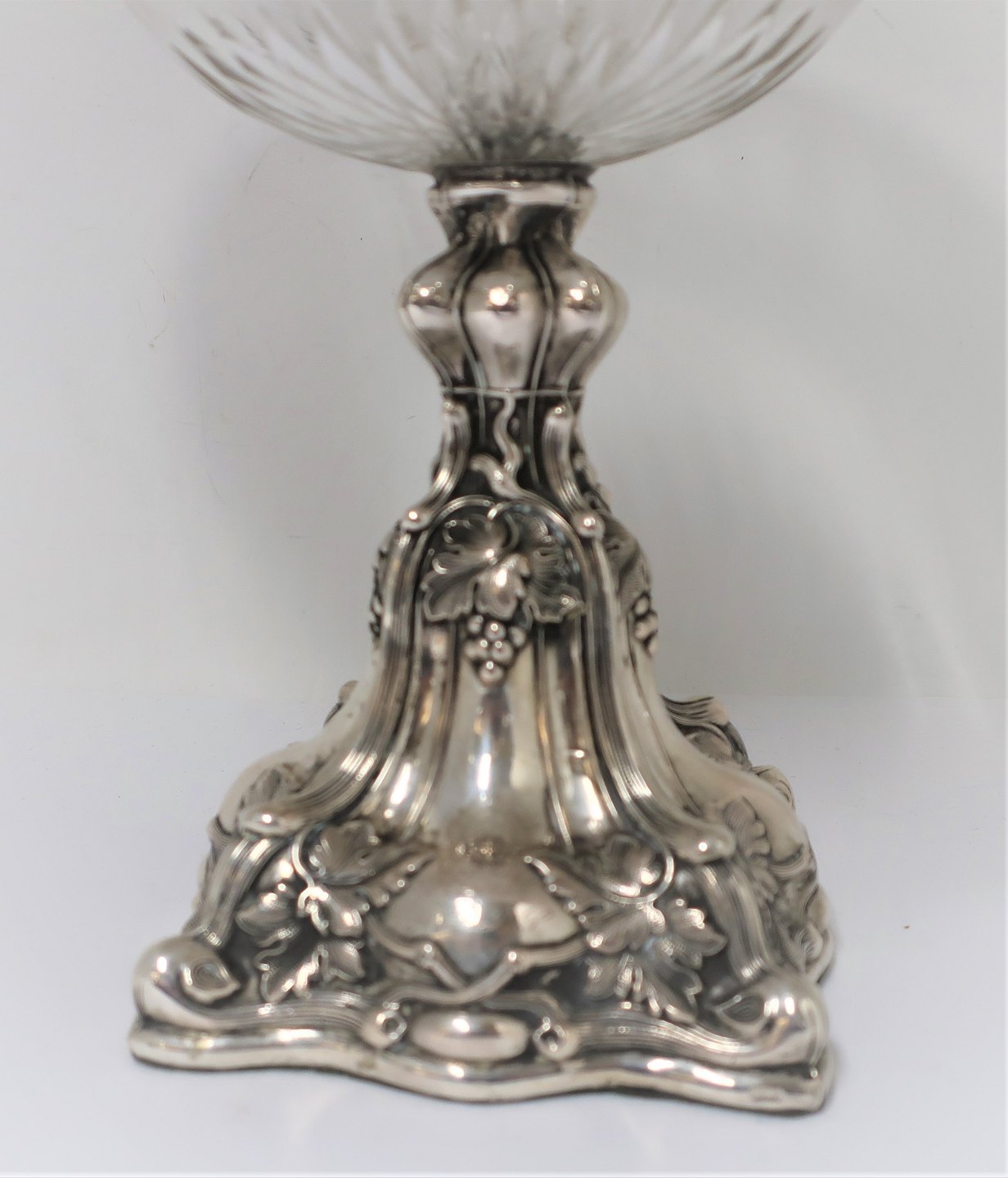 Silver bowl with glass (830). Height 19 cm. Diameter of glass is 22 cm.