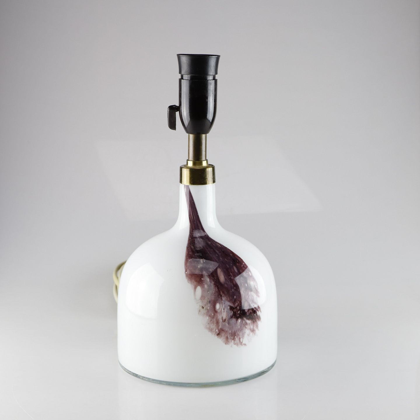 Glas bordlampe i hvid med lilla eller rosa farver