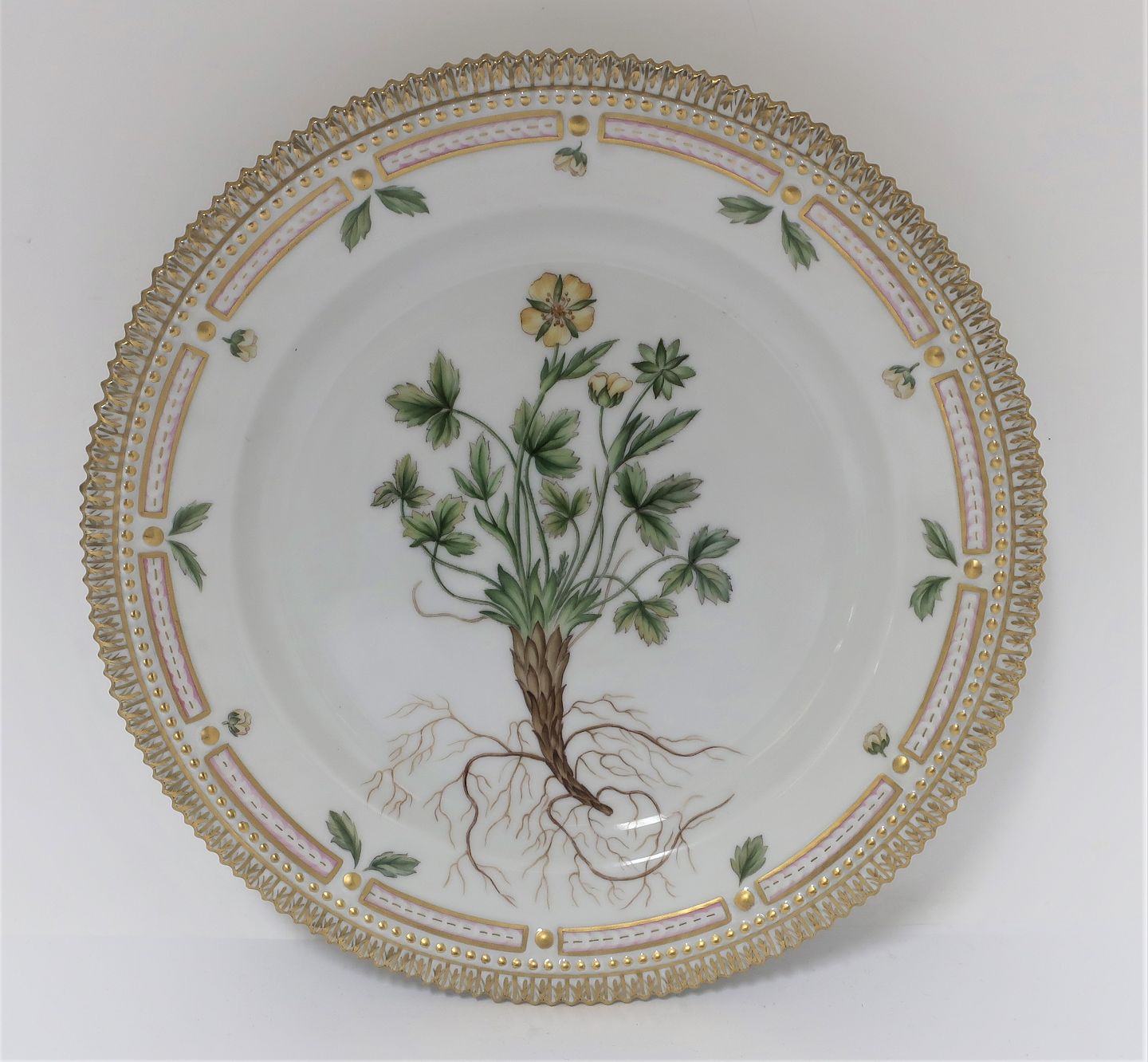 Royal Copenhagen, Flora Danica. Lunch plate. Design # 3550. Diameter 22 cm. (1 quality). Potentilla emarginata Pursh