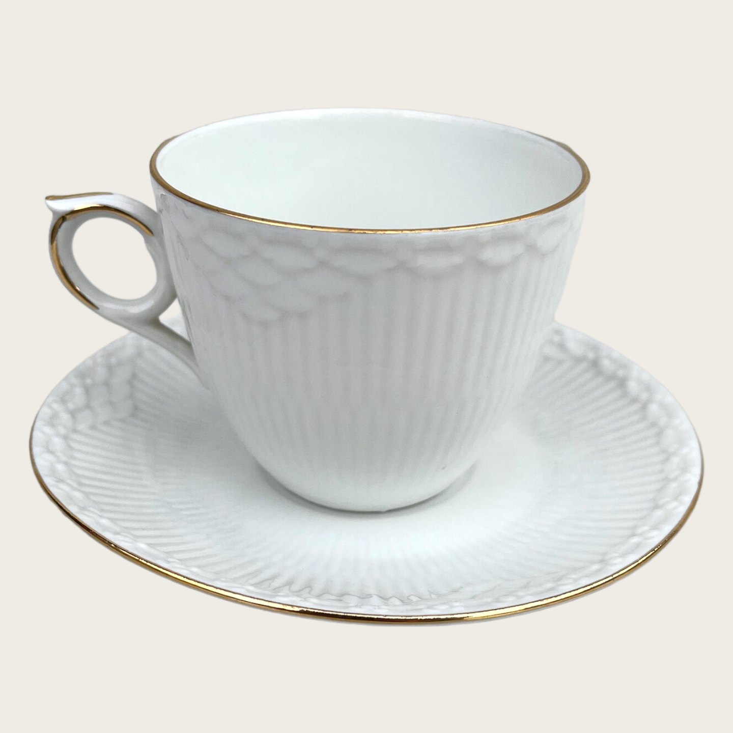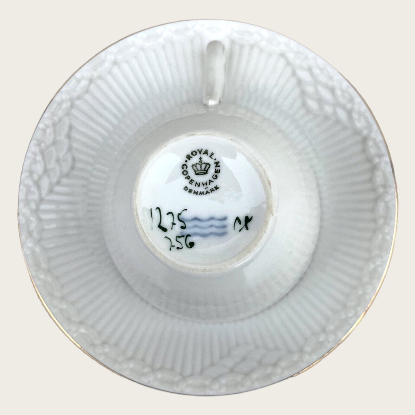 | Royal Copenhagen, Tradition, Hvid riflet med guldkant, Kaffekop #1275 / 756, 6,5cm høj, 7,5cm i diameter, 1 & 2 sortering *Pæn stand*