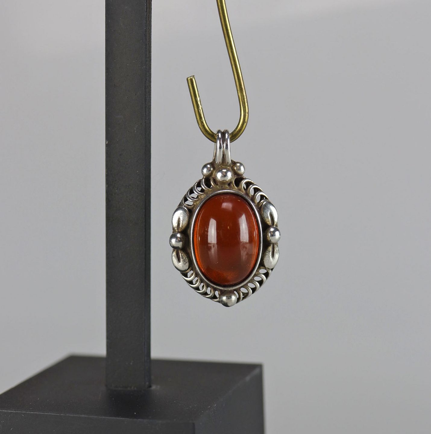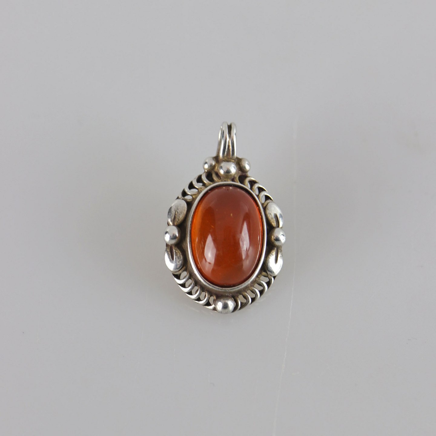 Sølvvedhæng med indlagt rav
