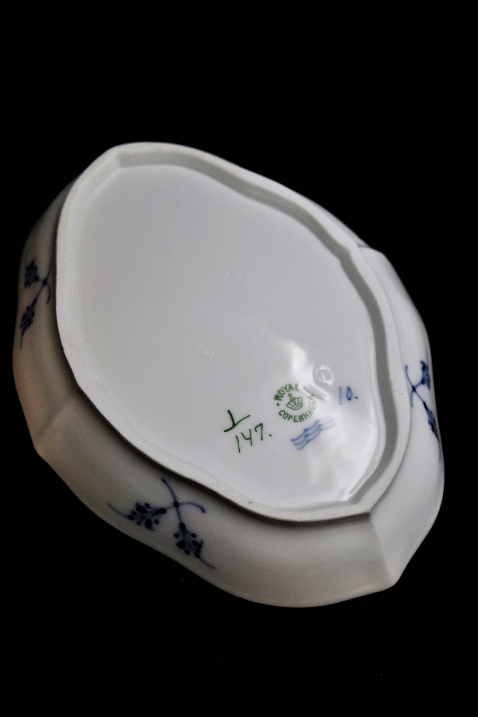 Royal Copenhagen Blue Fluted Plain oval dish. H:3,2 cm. 22.5x17cm. Decoration number: 1/147. 1.sort. Before 1923.