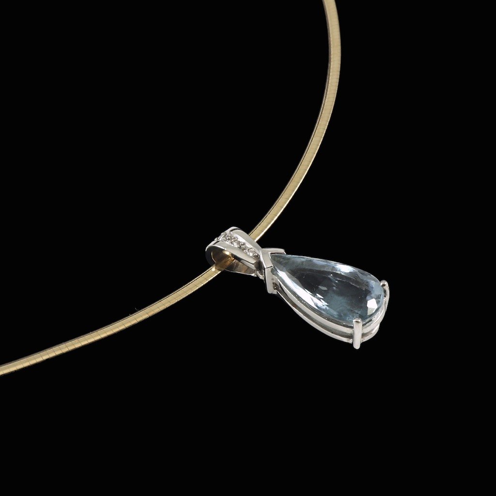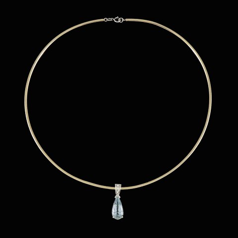 Halskæde i 18k guld og hvidguld med Aquamarin og brillianter.