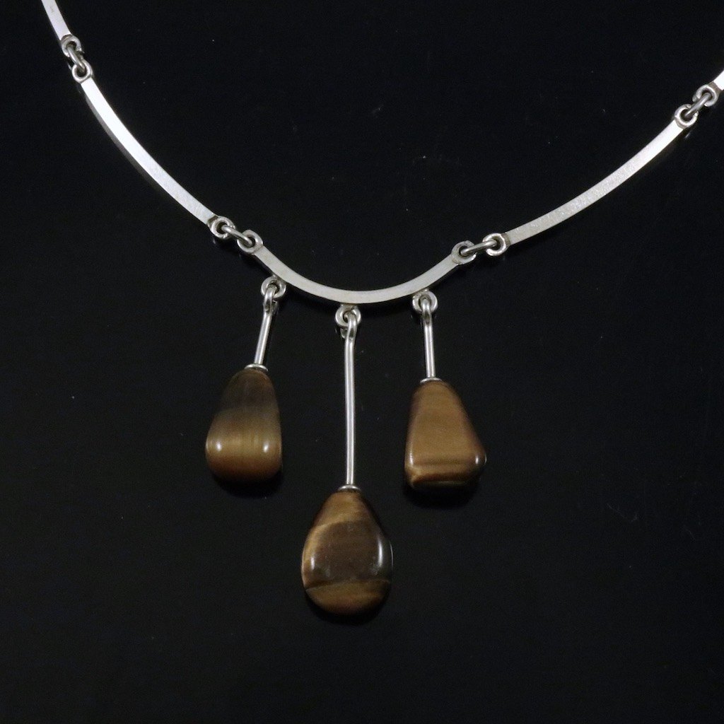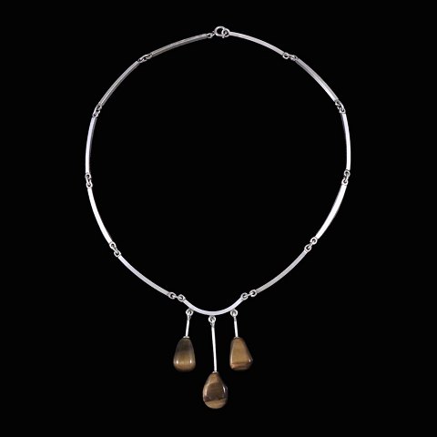 N.E. From. Halskæde i sterling sølv med tigerøje.