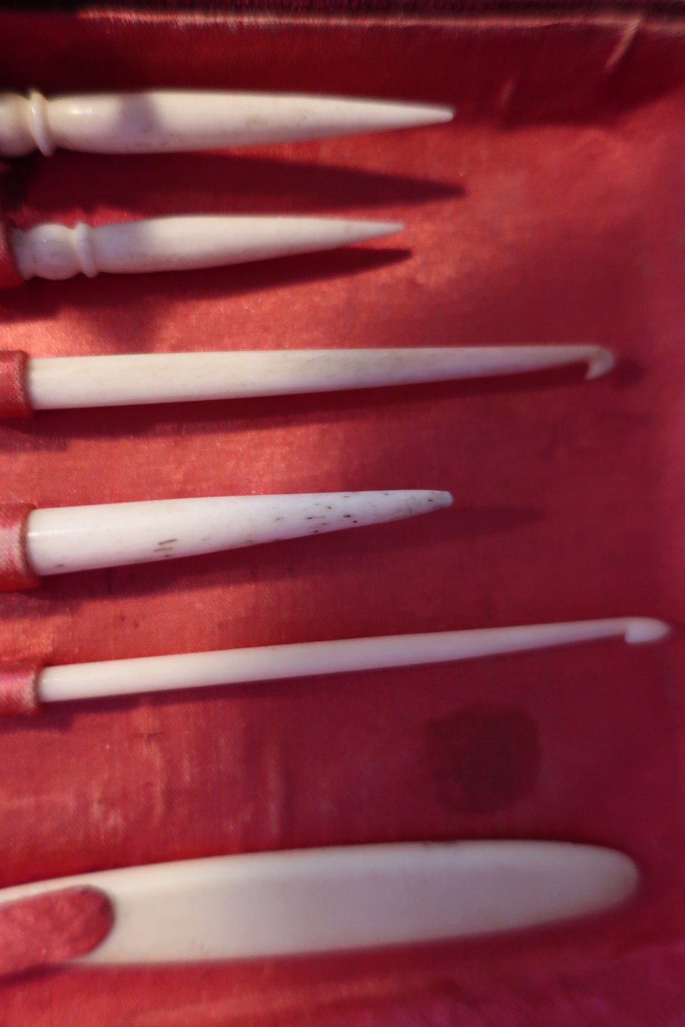 An antiques needlework box with many items for the needlework, - made in bone