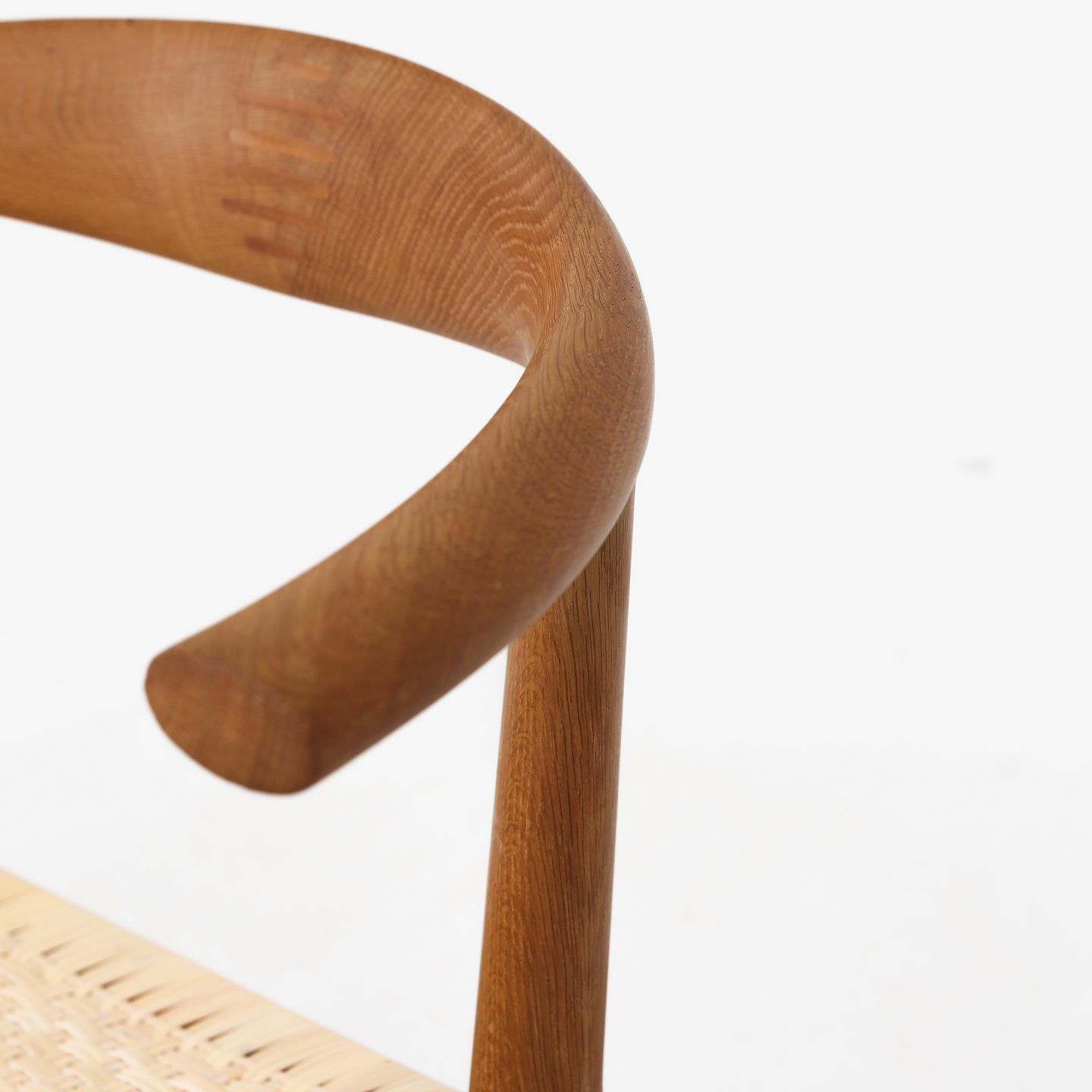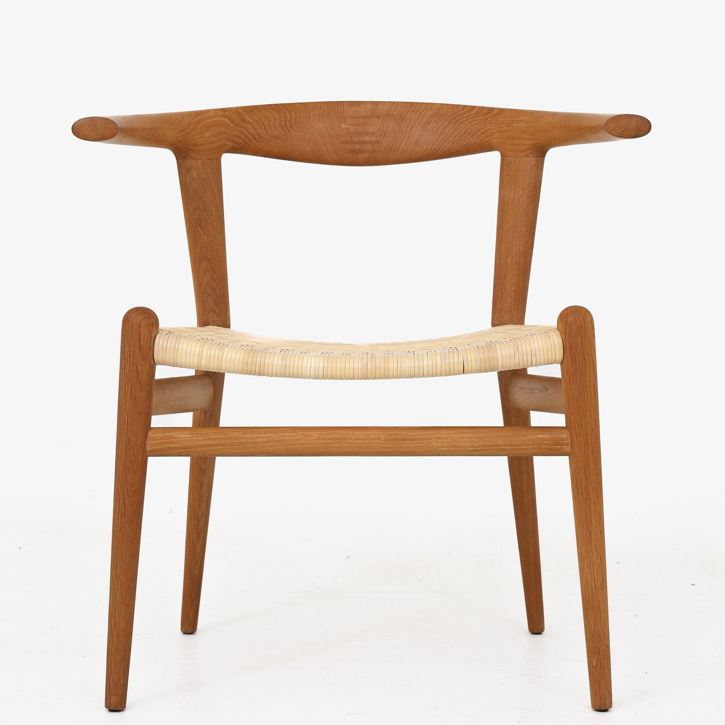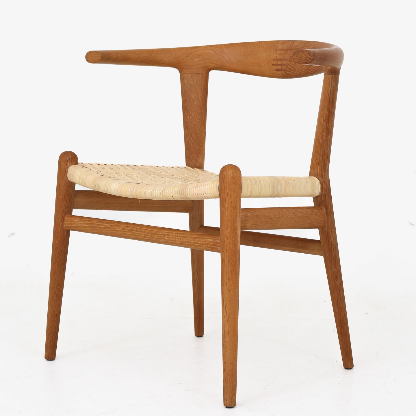 JH 518 - Sjælden 'Tyrestol'/'Bull Chair' i massiv eg og med sæde af nyt, flettet sjeneflet. Originalt mærkat fra producent. Formgivet i 1961.