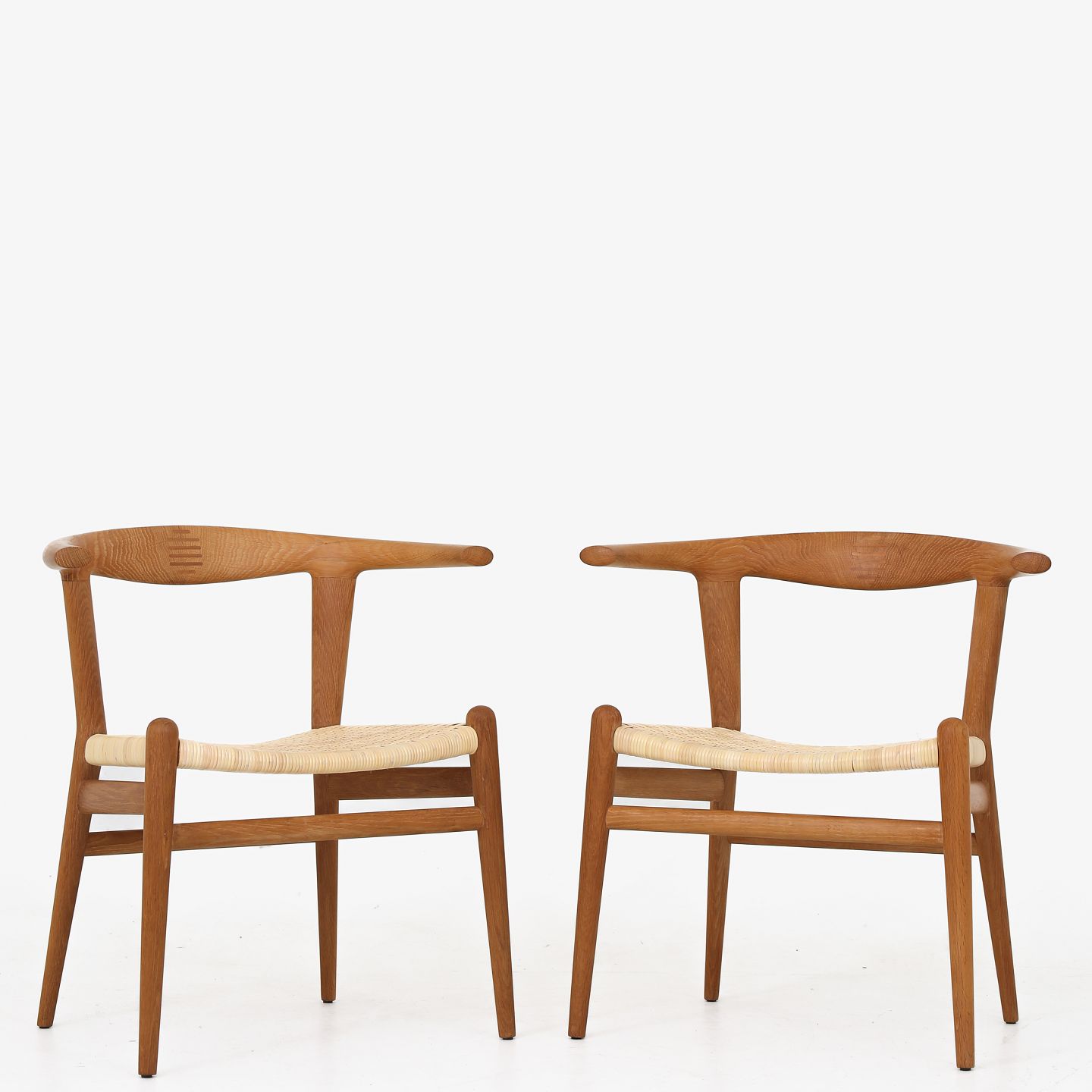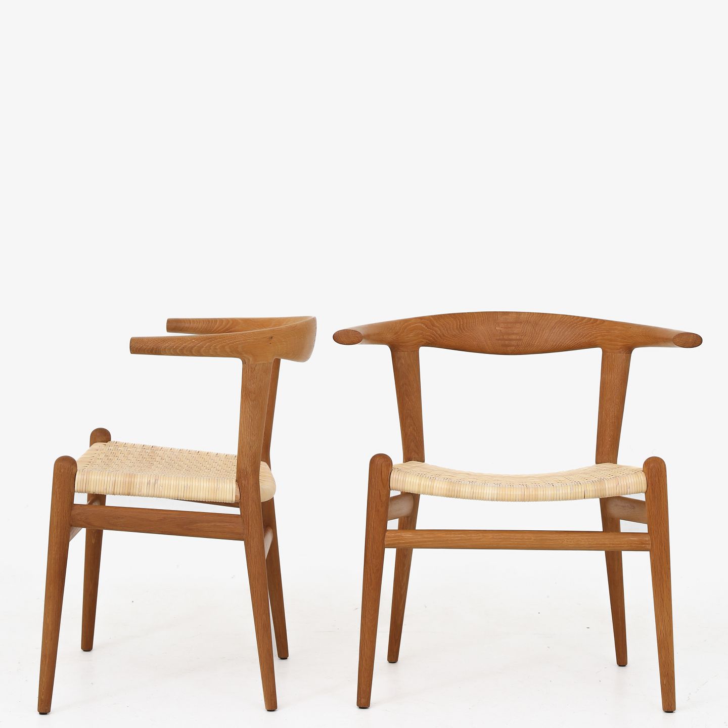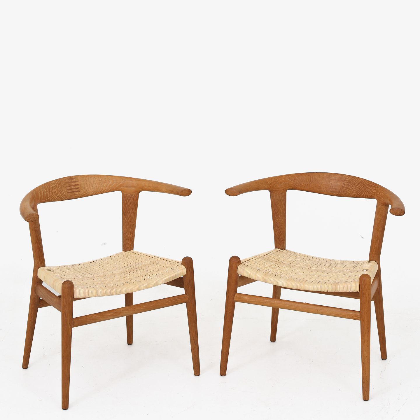 JH 518 - Sjælden 'Tyrestol'/'Bull Chair' i massiv eg og med sæde af nyt, flettet sjeneflet. Originalt mærkat fra producent. Formgivet i 1961.