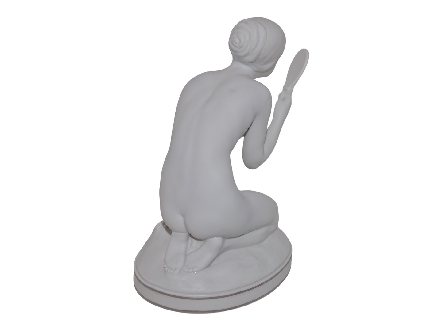 Royal Copenhagen white parian figurine with silver edge, girl with mirror designed by artist Gerhard Henning.