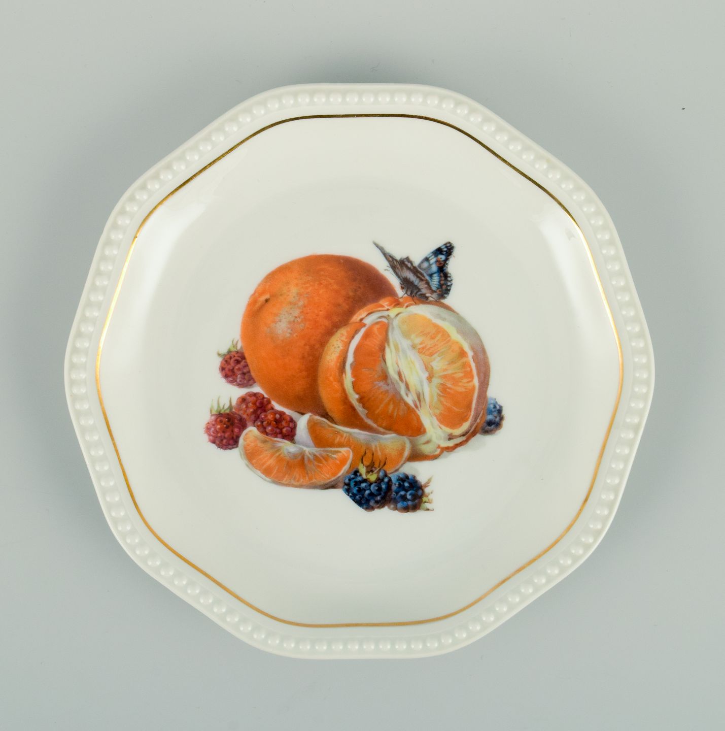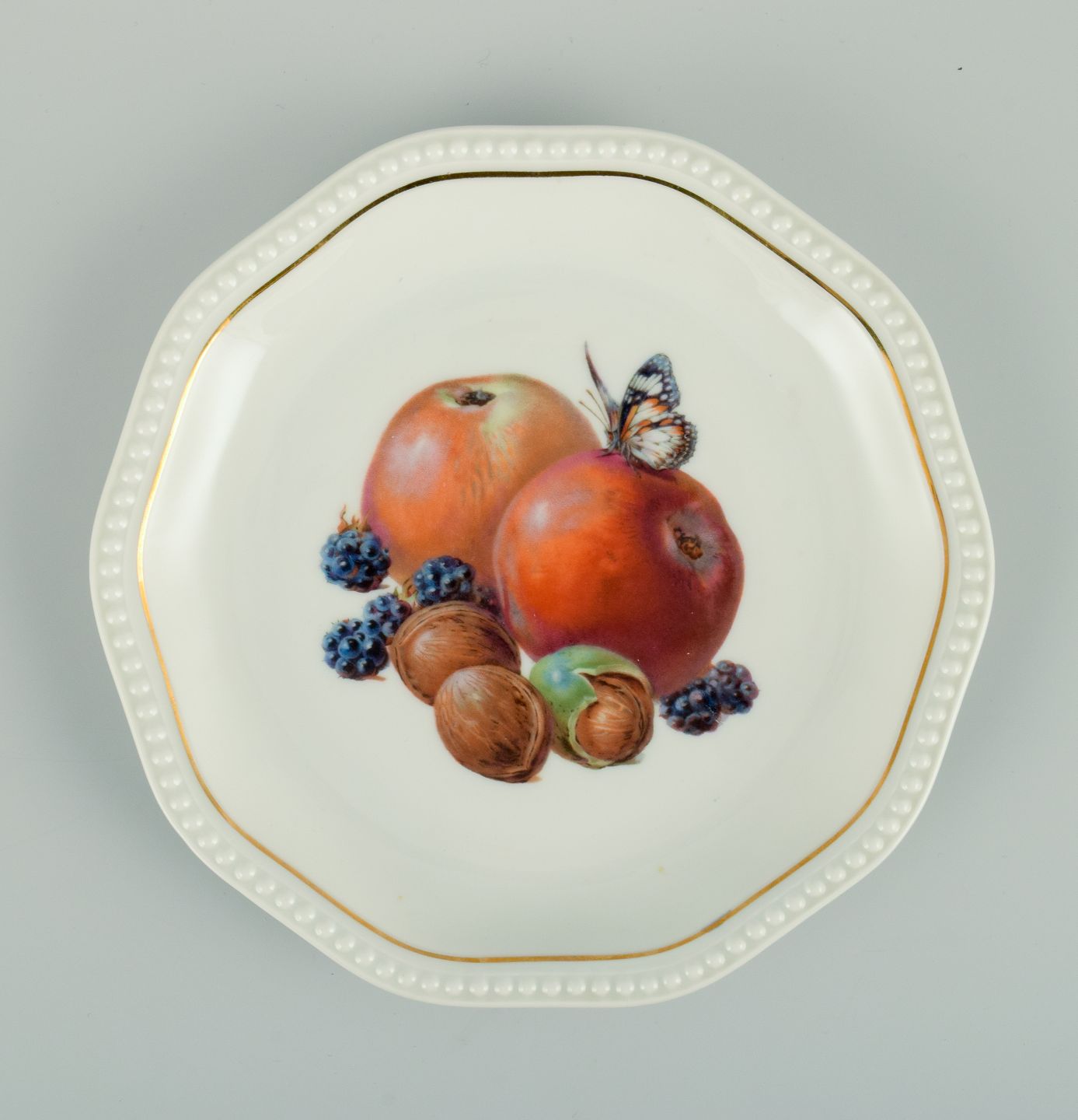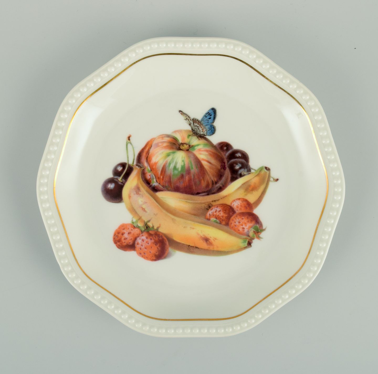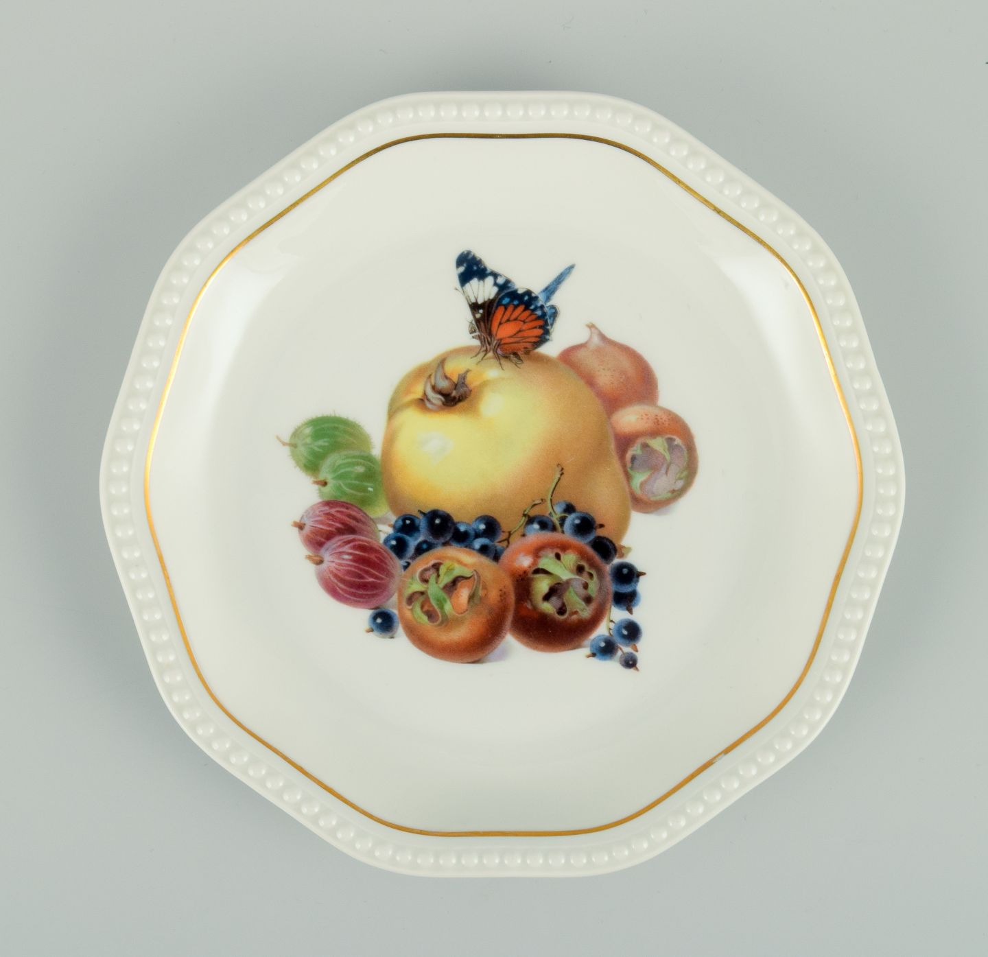 Rosenthal, Germany, six plates hand painted with fruits, butterflies and gold decoration.