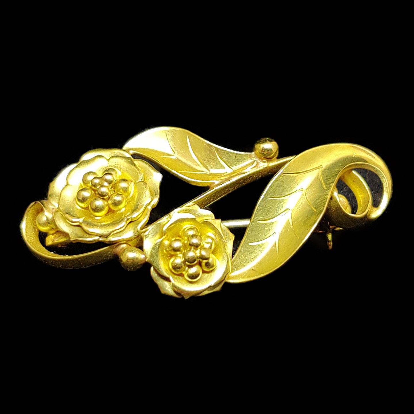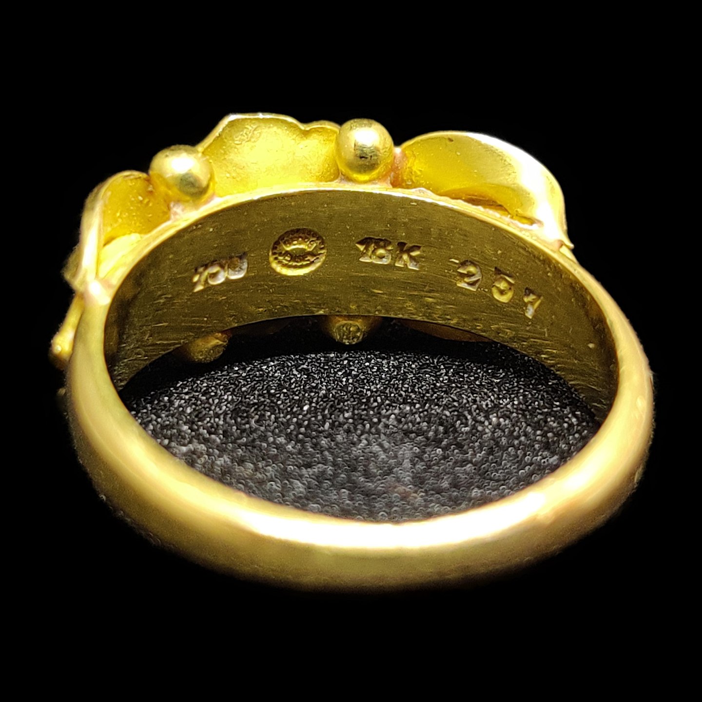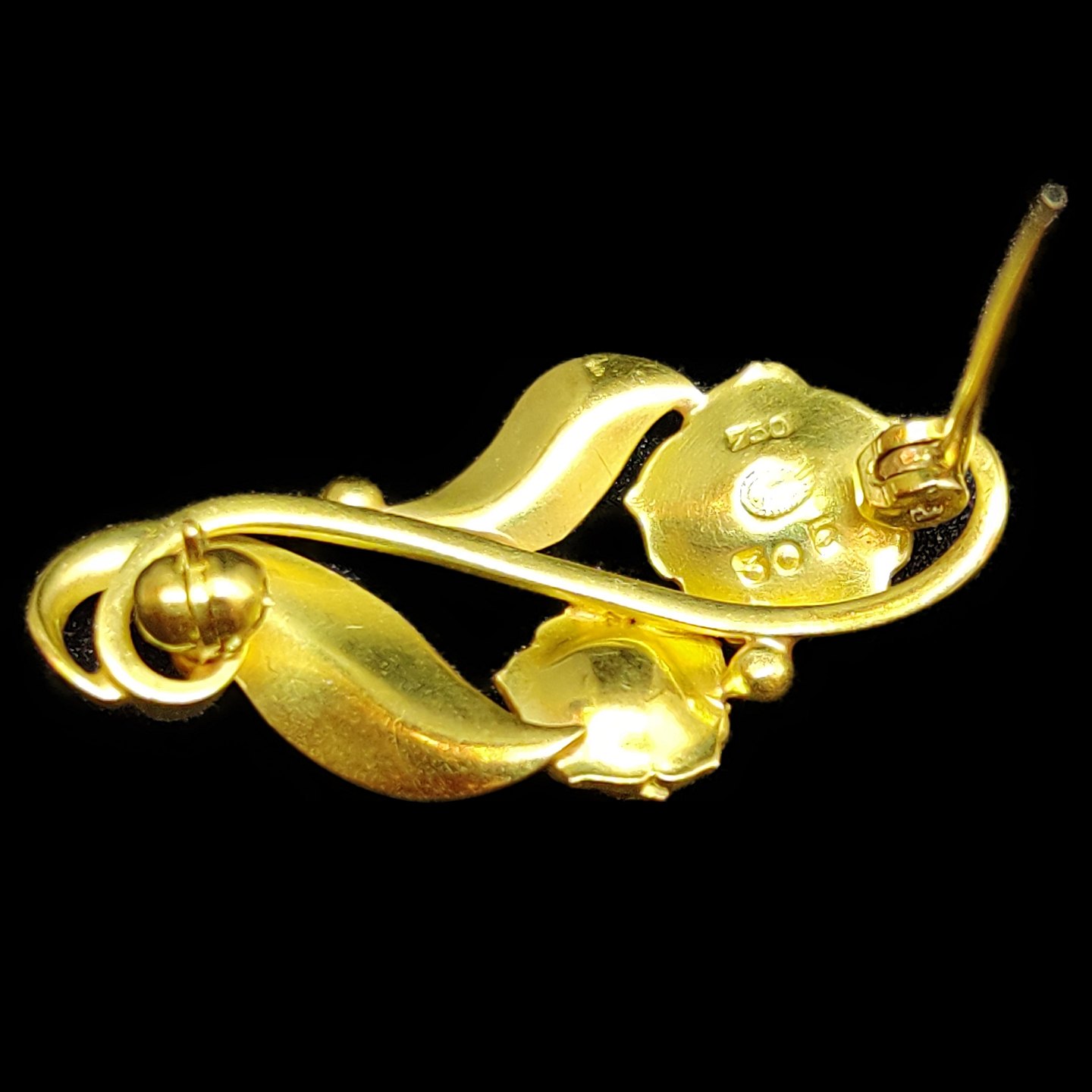Georg Jensen; A jewelry set in 18k gold, bracelet dkr. 24.000,-, brooch dkr. 8.500,- and ring dkr. 12.000,-.