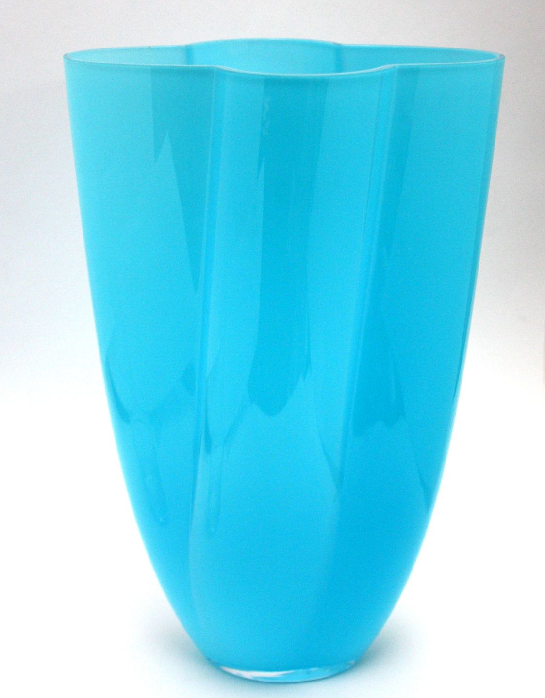 Holmegaard, Gardenia, Høj turkis opal vase. Designet af Anja Kjær i 1990. Højde 33,5 cm. Bredde 16 cm. Længde 21,5 cm. I sortering. Pris: 1.050 kr.