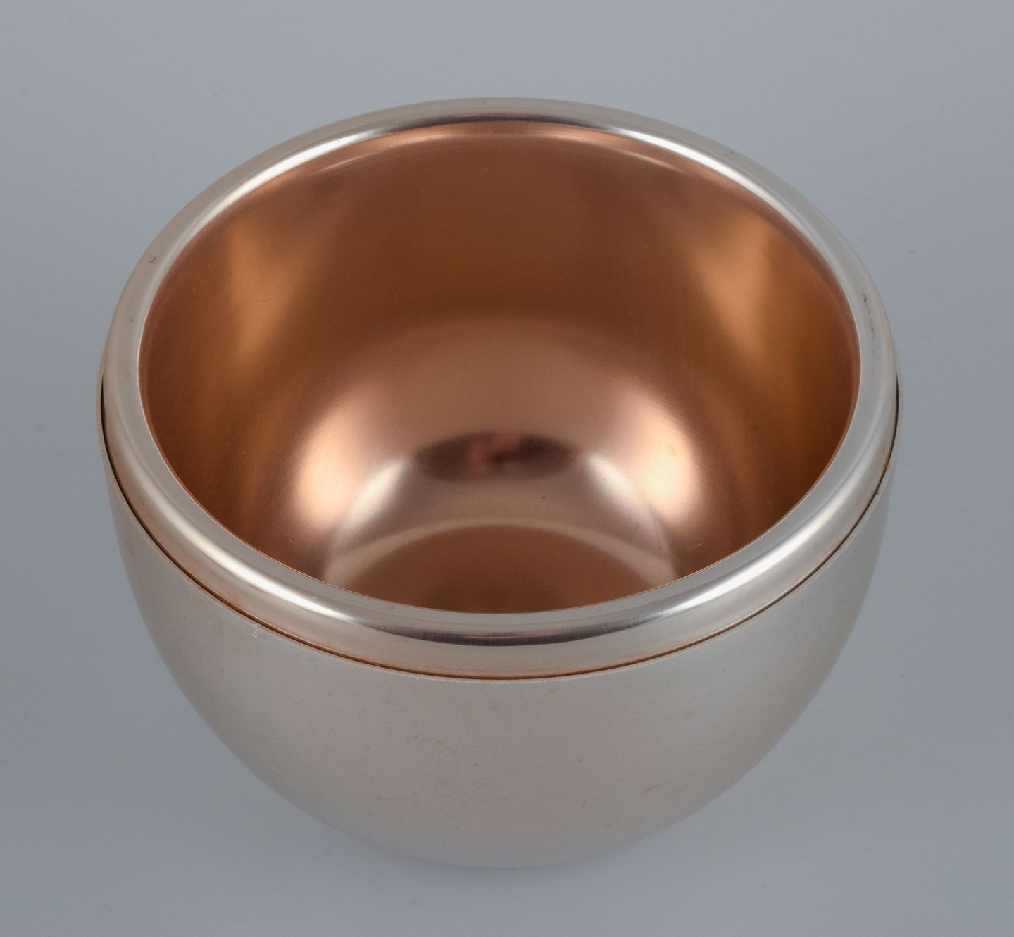 Ettore Sottsass for Rinnovel, Italy. Ice bucket in aluminum and brass shaped like an apple. Inside gilded.