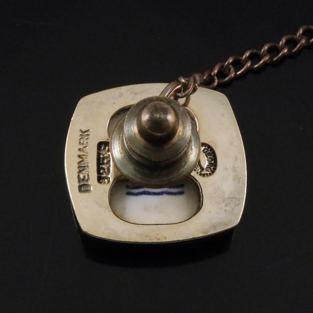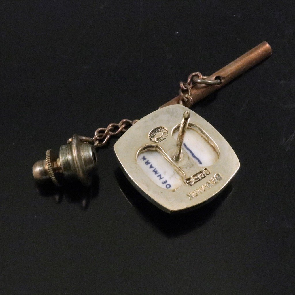 Georg Jensen / Royal Copenhagen. Sliplenål / stift i forgyldt sterlingsølv og porcelæn.