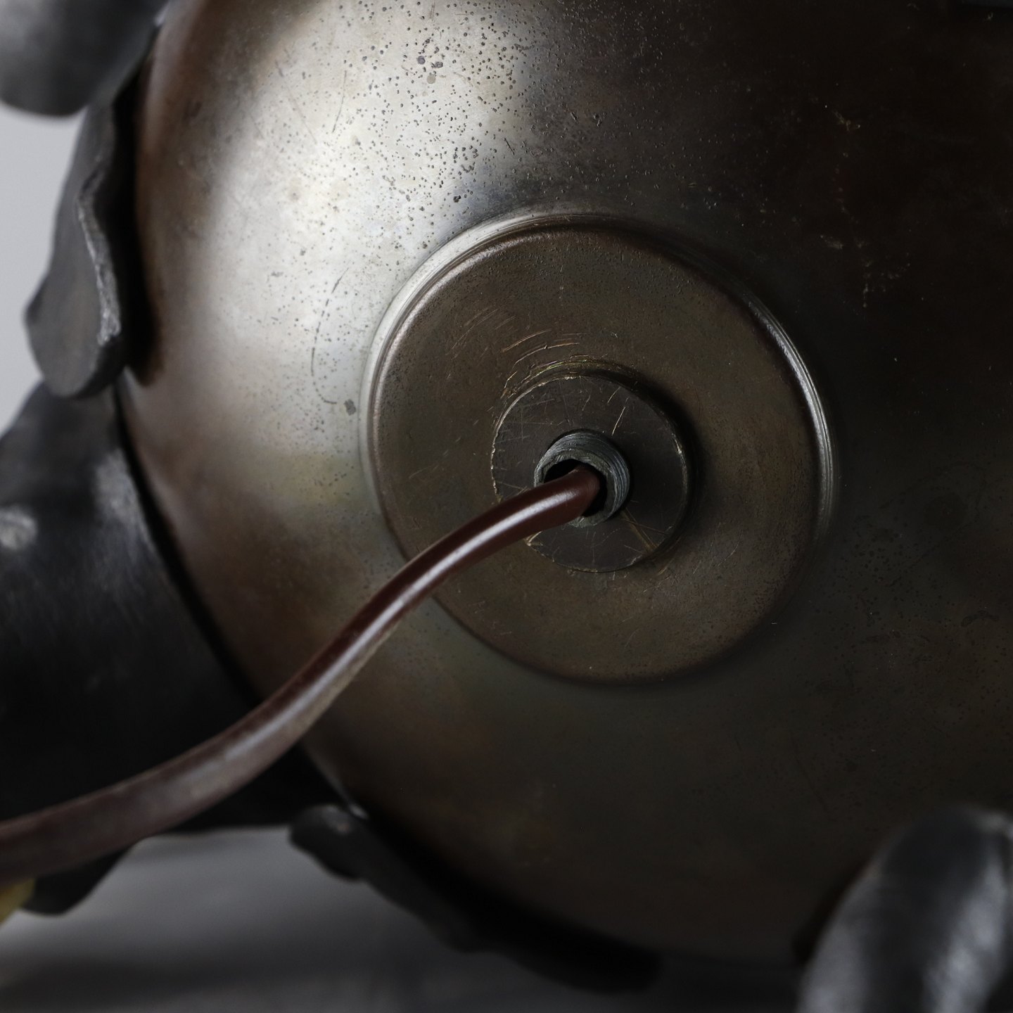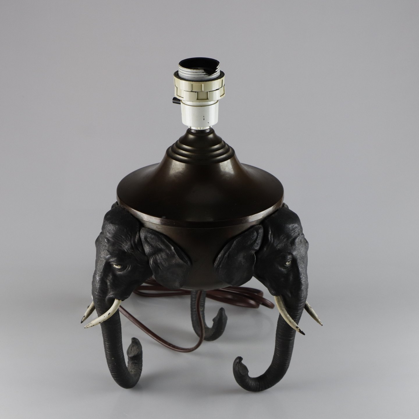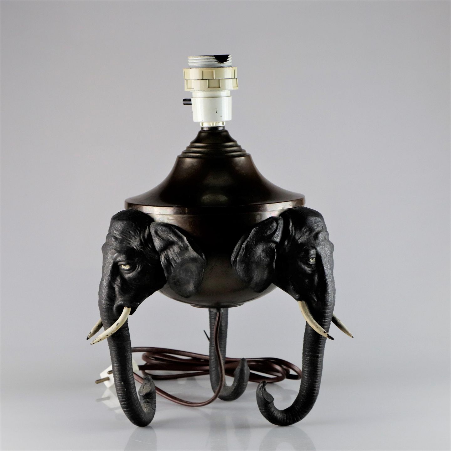 Bordlampe af aluminium med 3 elefant hoveder med stødtænder og snablerne er lampens fødder