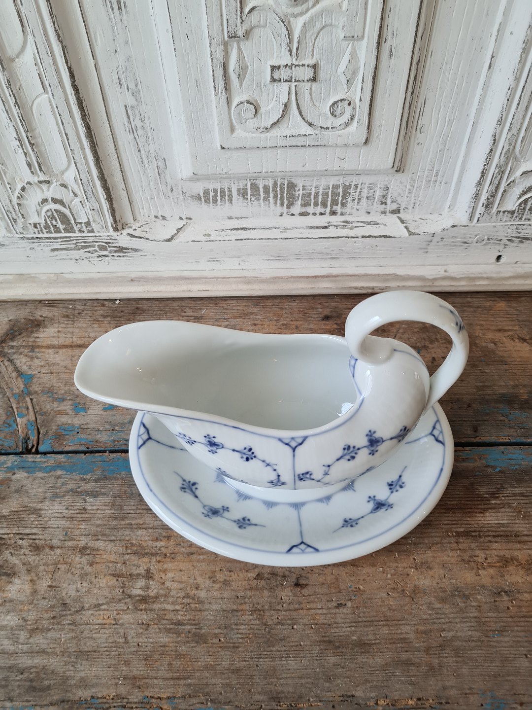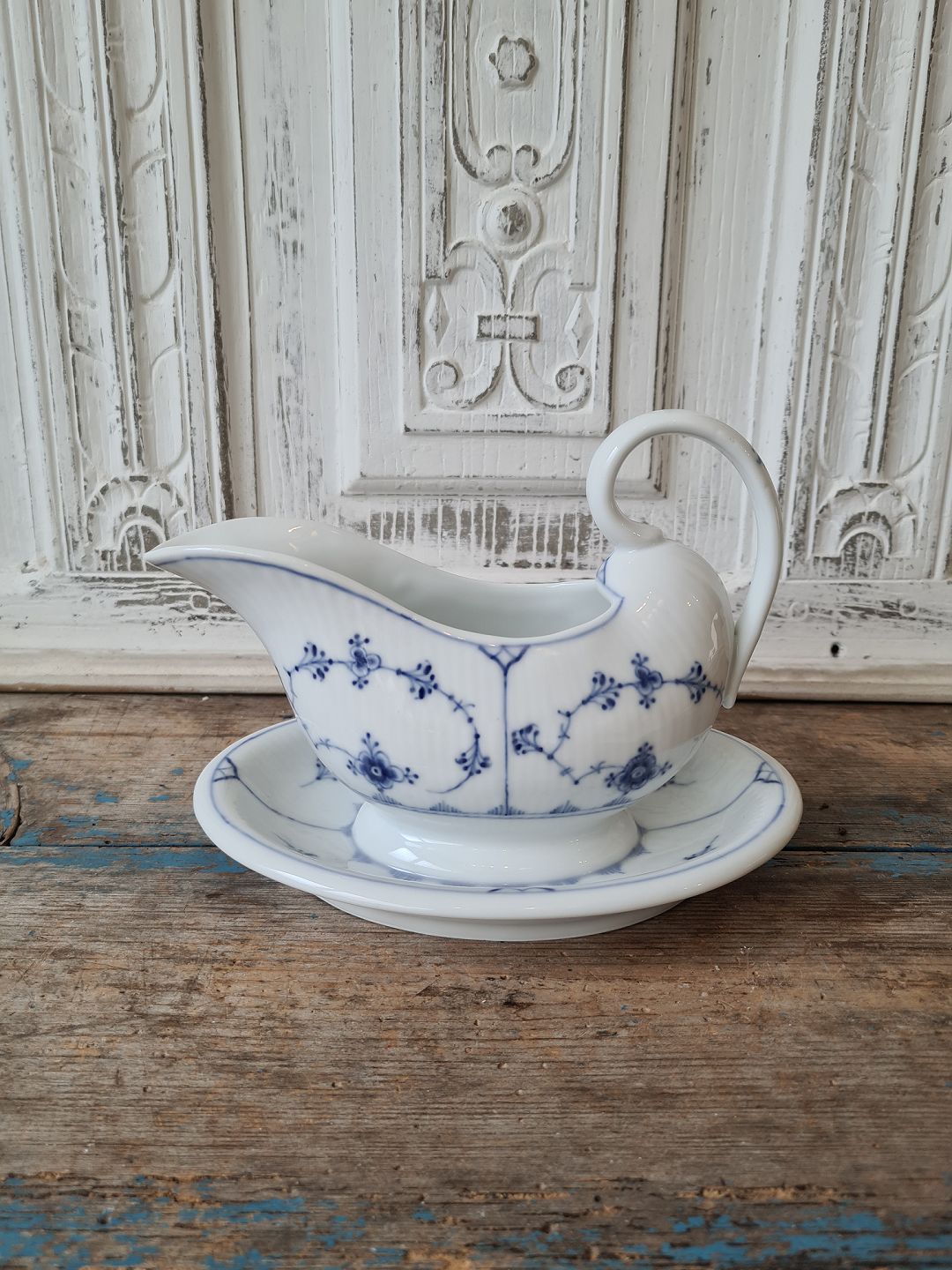 Royal Copenhagen Musselmalet riflet saucekande på fast underfad