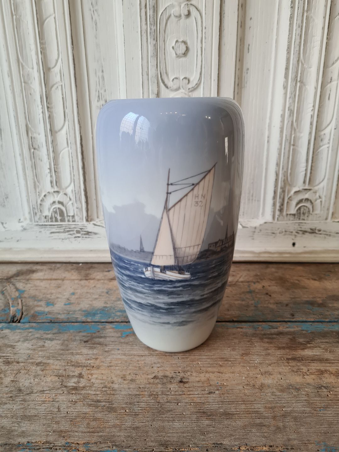 Royal Copenhagen Vase dekoreret med sejlbåd