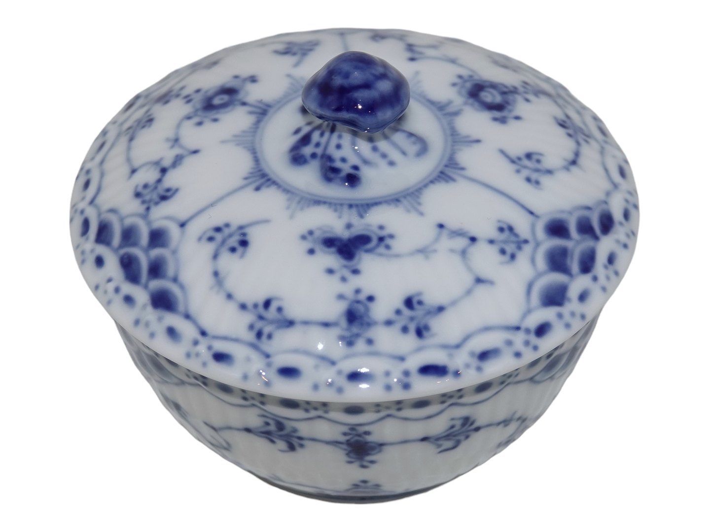 Royal Copenhagen Musselmalet Halvblonde, lille sukkerskål med låg.