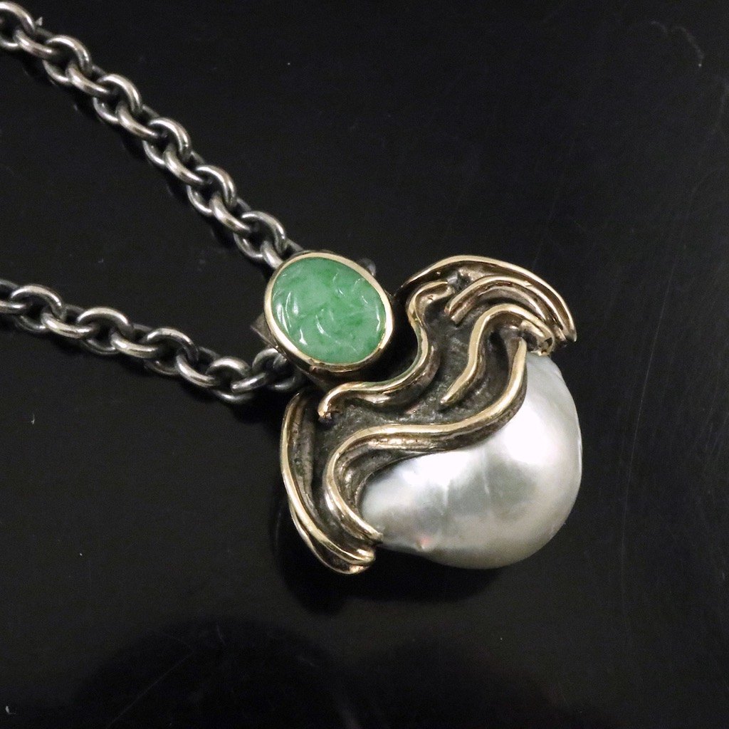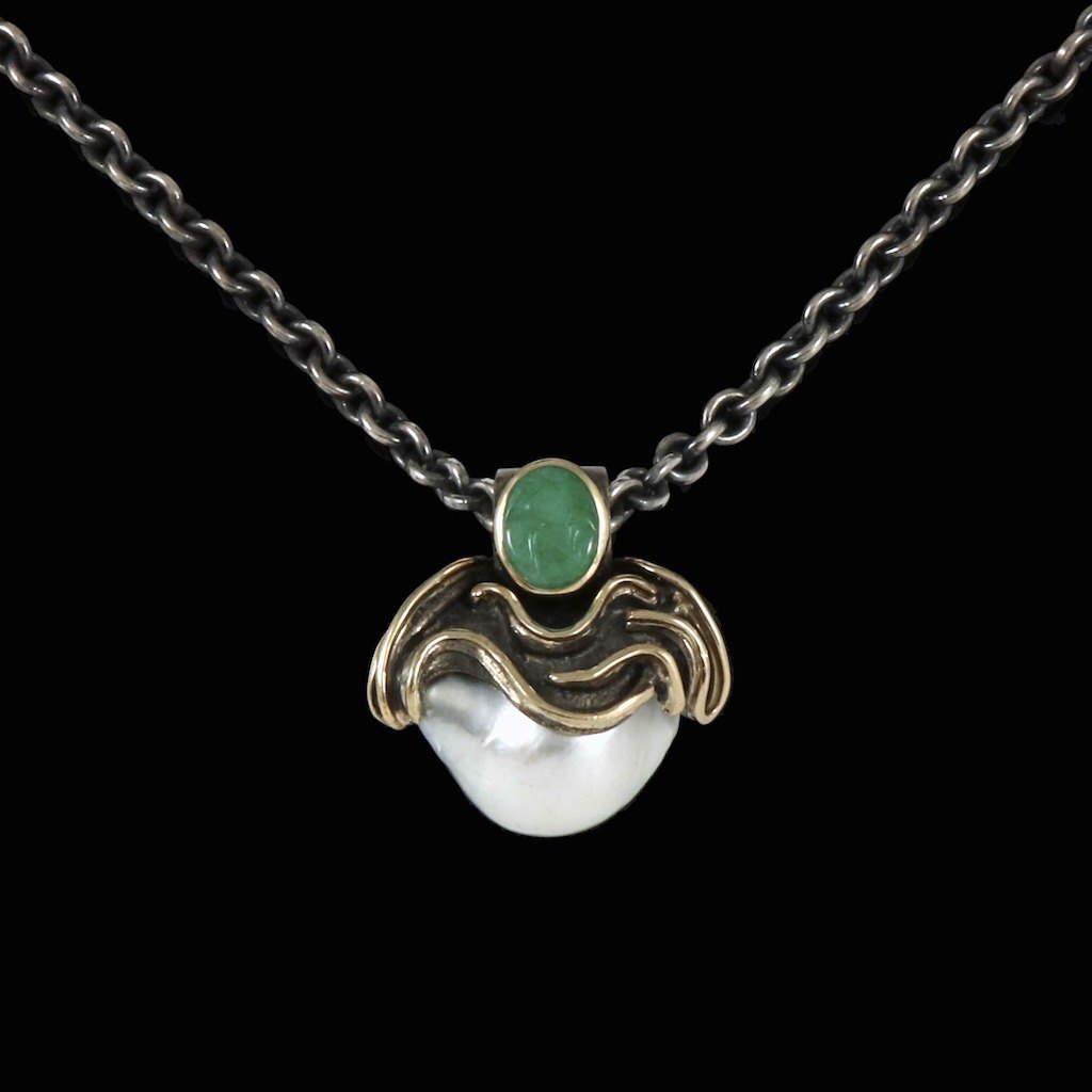 Vilhelm Holmstrup. Vedhæng i sterlingsølv med 18k guld, Perle og Jade.