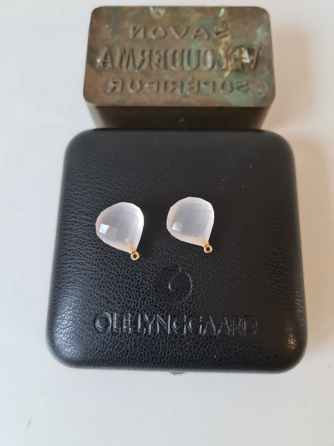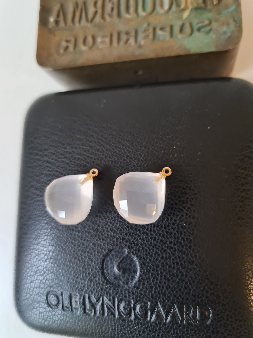 Ole Lynggaard rosa kvarts drops med øsken i 18 kt guld