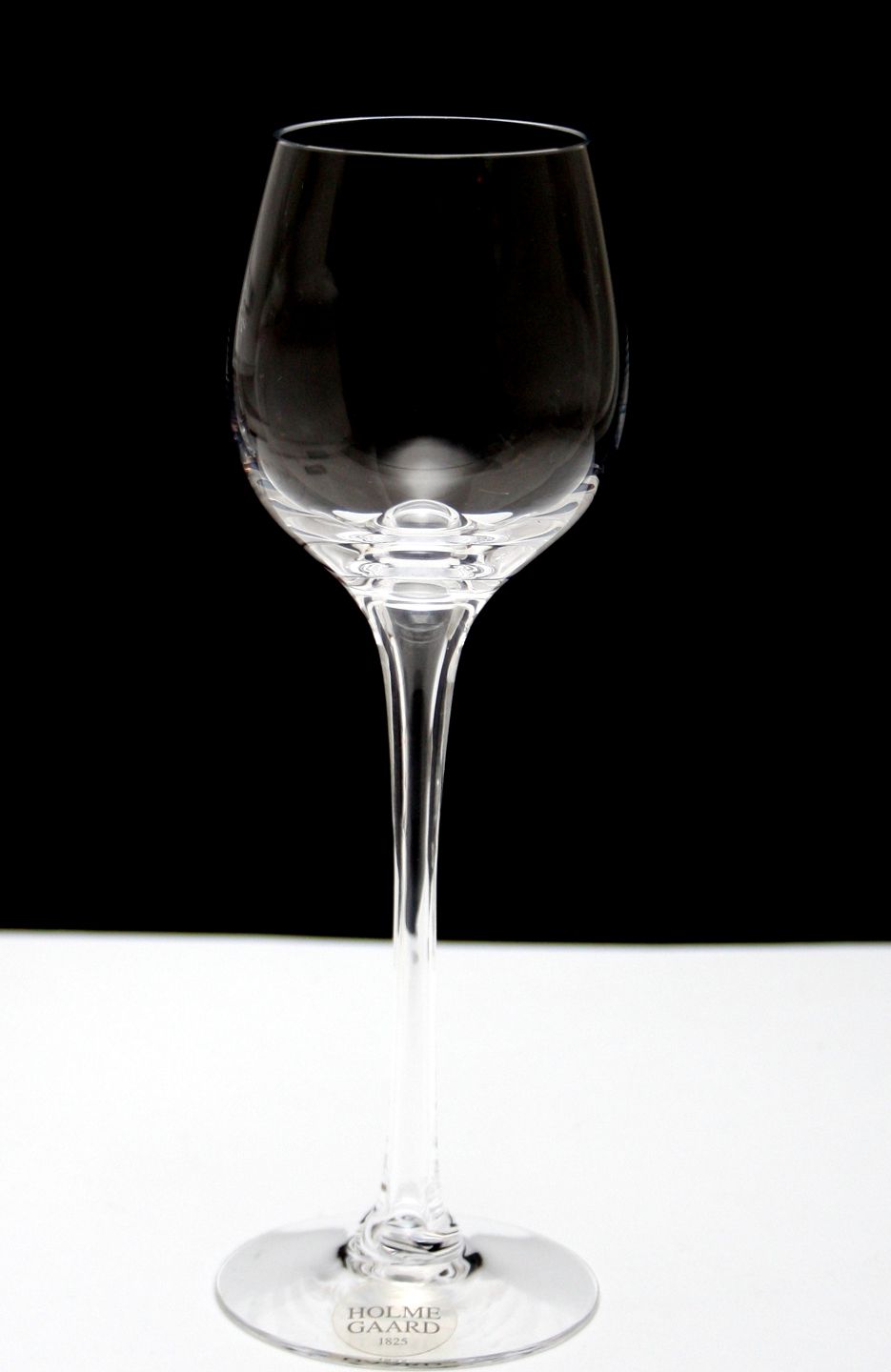Et højt elegant glas med hul stilk, med en boble i bunden af glasset, et stykke glasmagerkunst. Hvidvin. Højde 22 cm. Øverste diameter 5,5 cm. Pris: 100 kr. stk. Lager: 12+