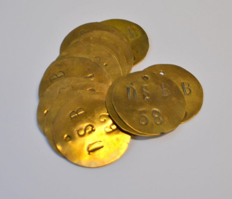 Antagelig mærker, som de enkelte arbejde ved D.S.B benyttede, når de gik til og fra arbejde.