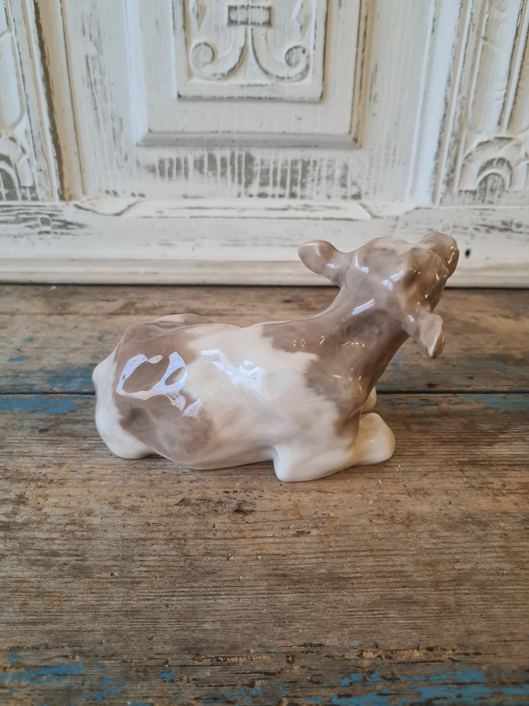 Royal Copenhagen Figur - Kalv - brun og hvid broget