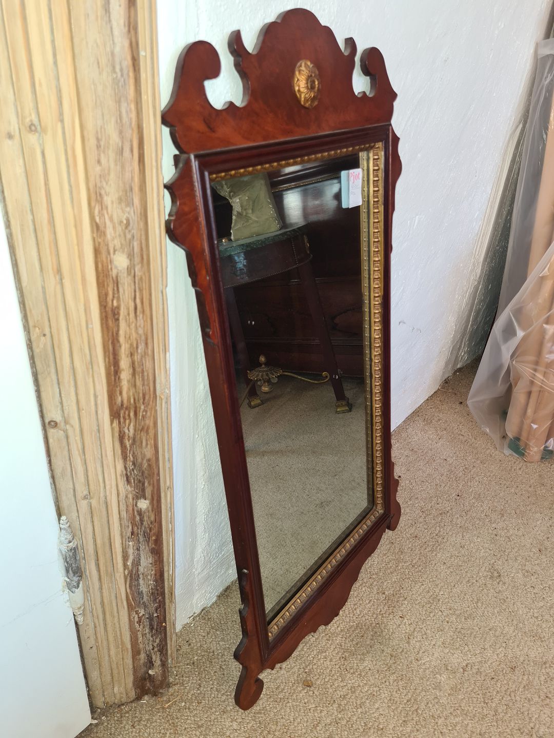 Spejl i Mahogni ramme. Fremstår pænt og velholdt uden nævneværdige brugsspor.