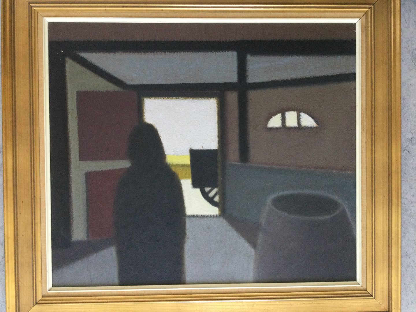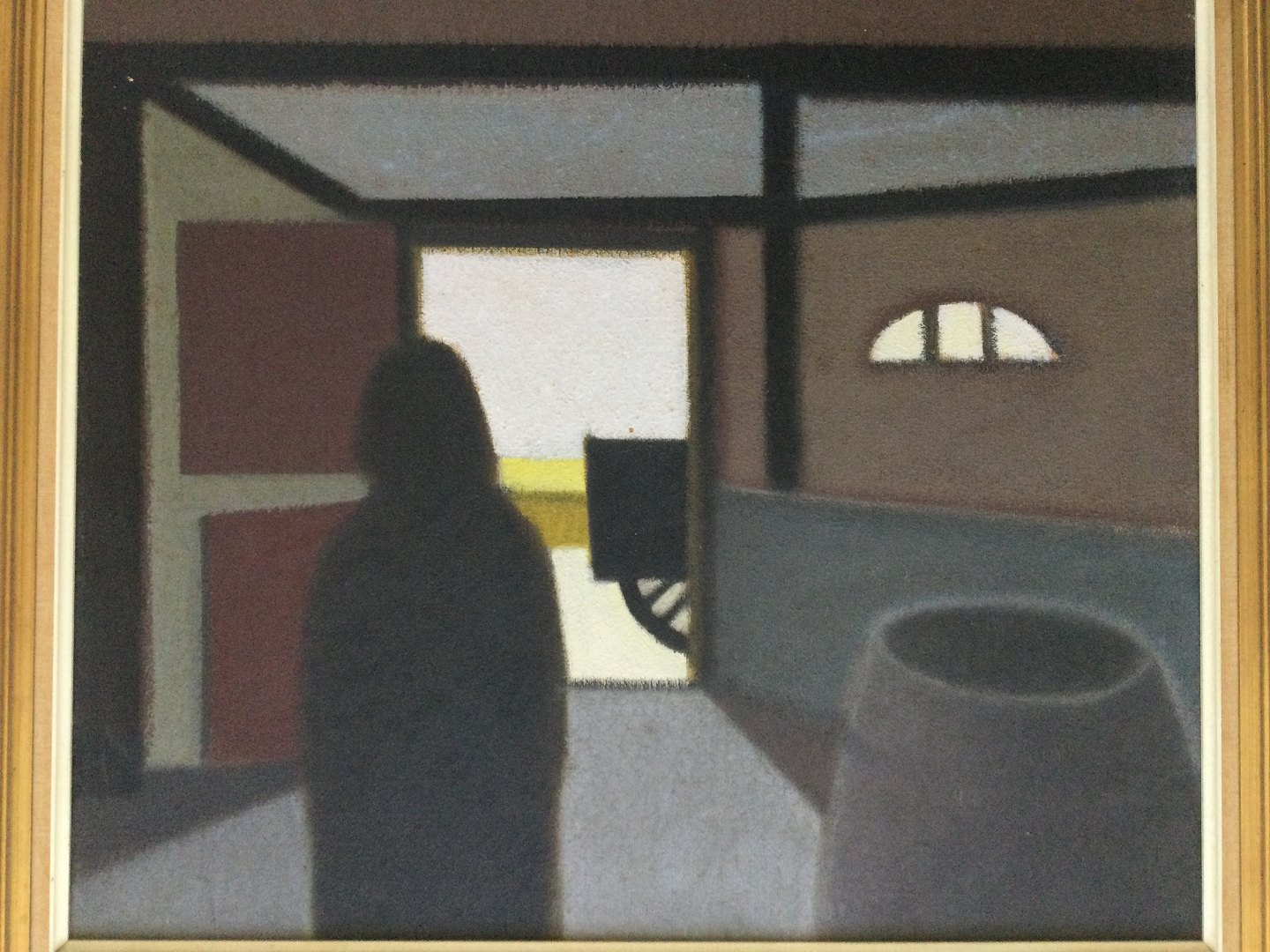 Maleri af Knud Horup - Person ved stalddørsåbning 1964.