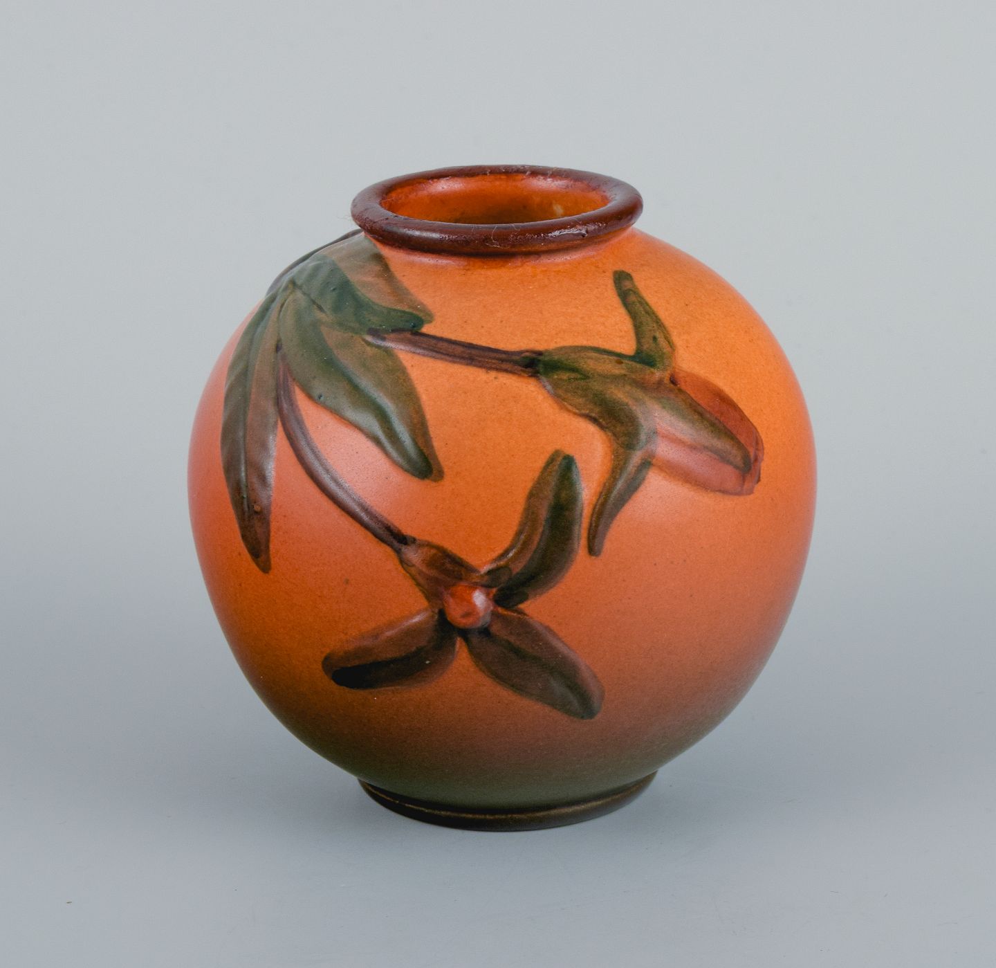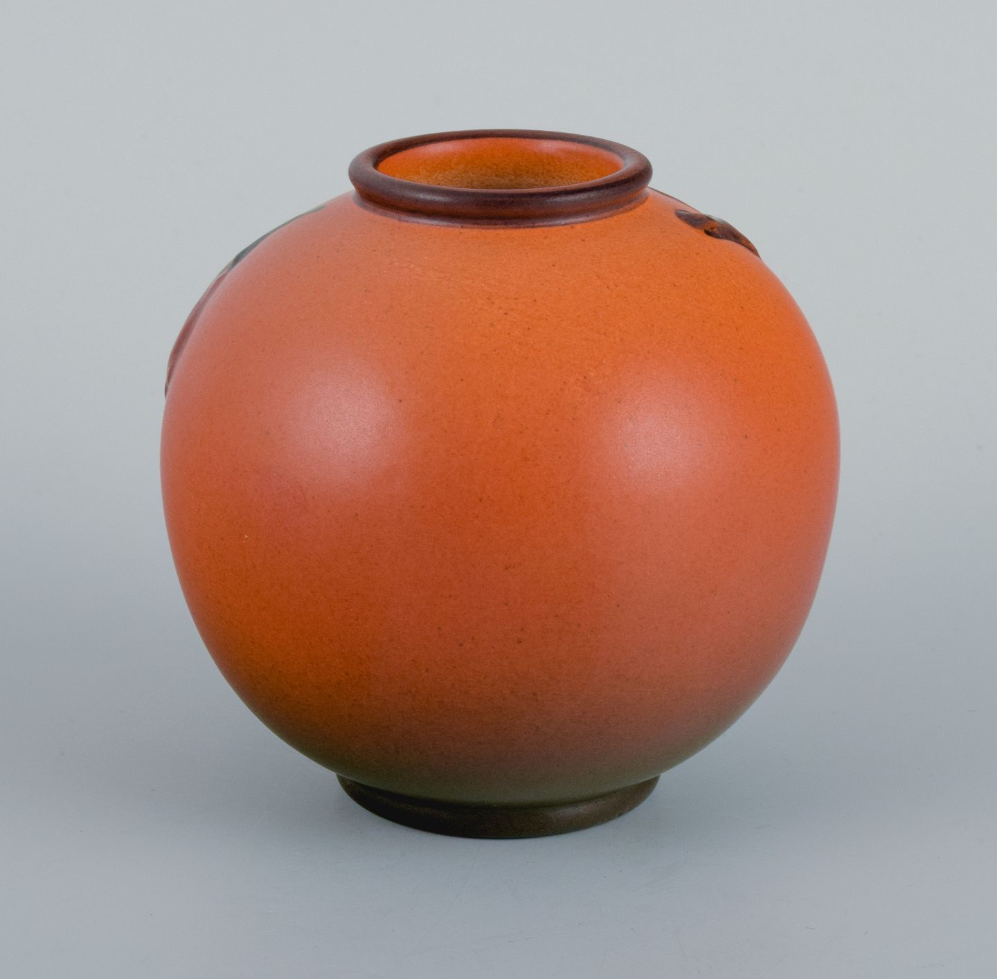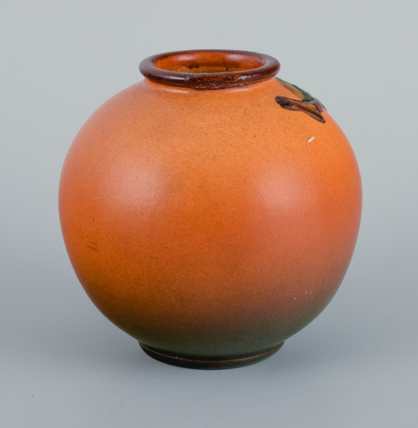 Ipsen's, Denmark. Two small vases with glaze in orange-green shades.