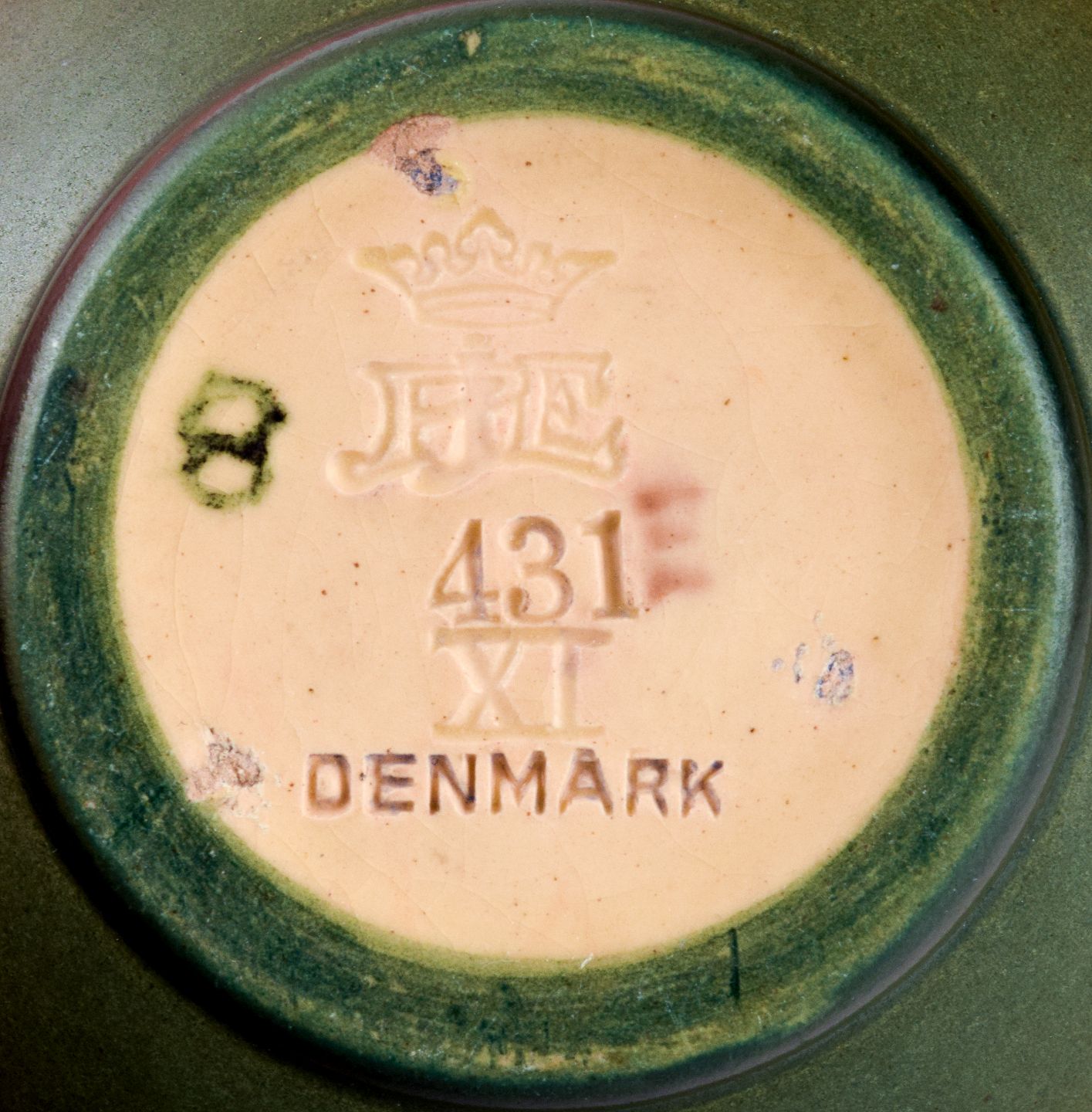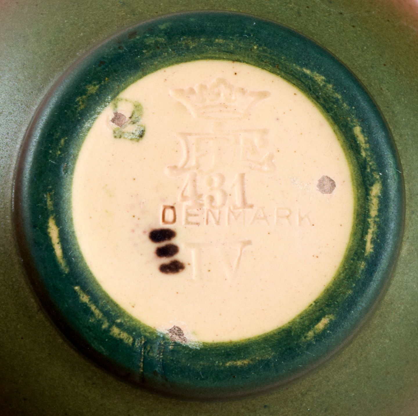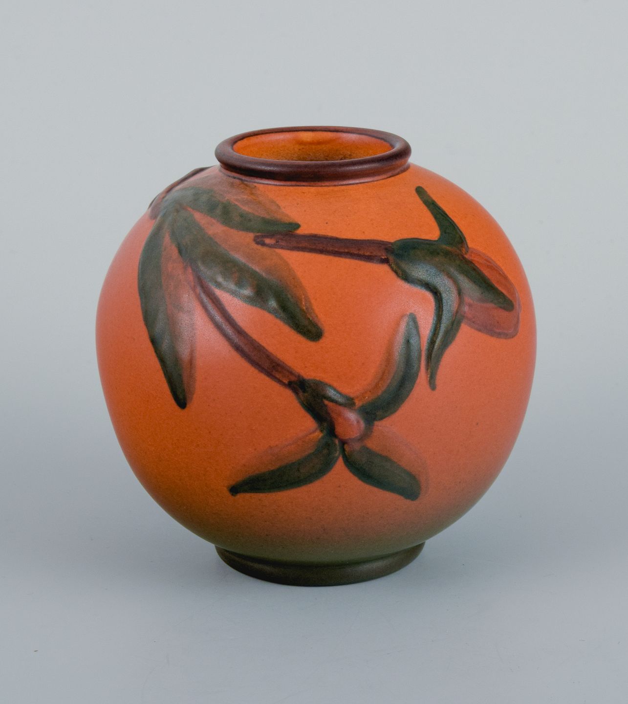 Ipsen's, Denmark. Two small vases with glaze in orange-green shades.