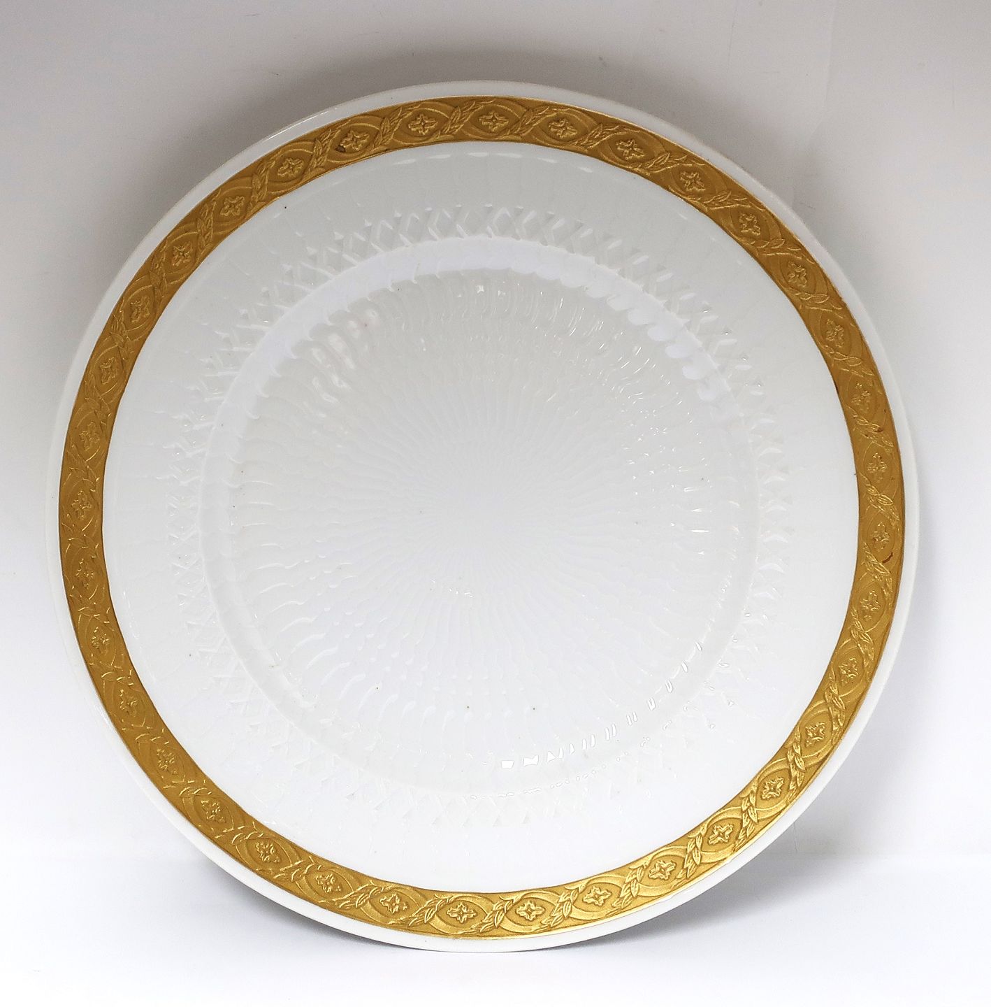 Royal Copenhagen. Vifte med guld. Rundt fad. Model 11512. Diameter 32,5 cm. (1 sortering)