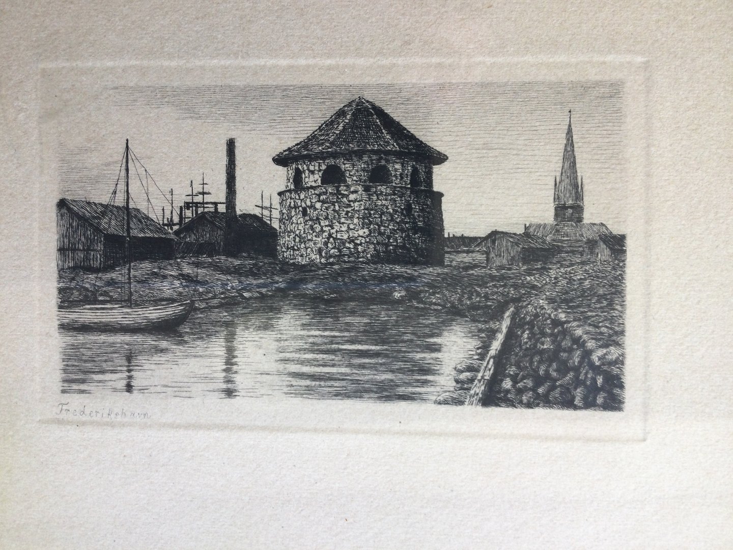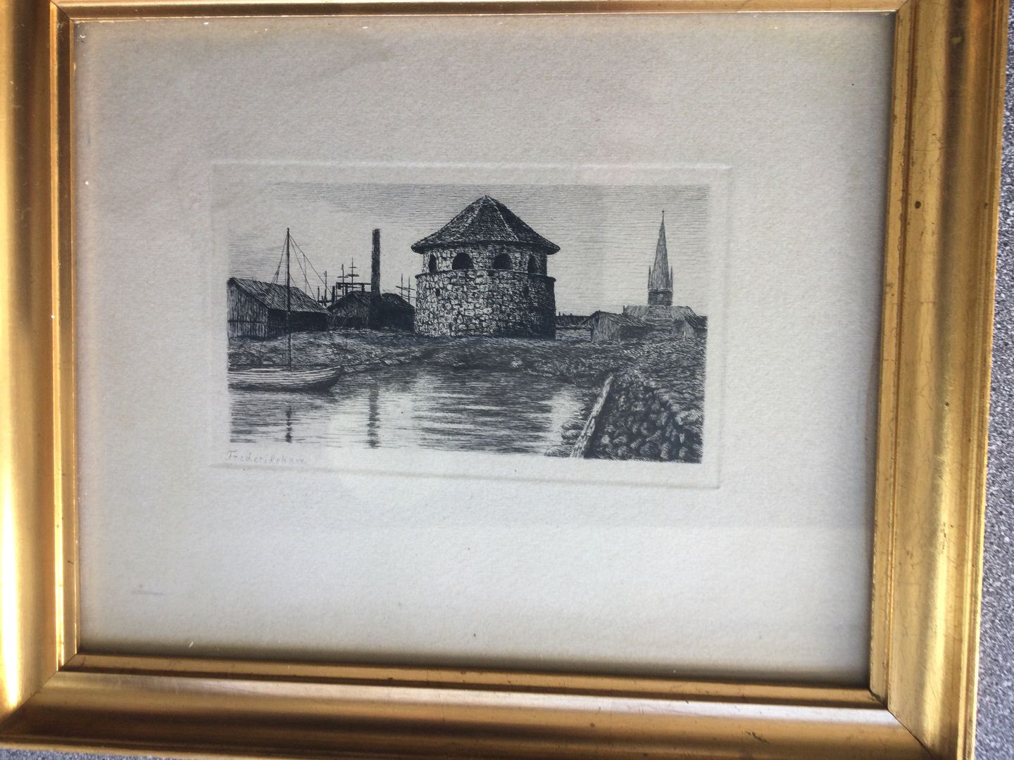Radering af Krudttårnet i Frederikshavn på sit oprindelige plads.