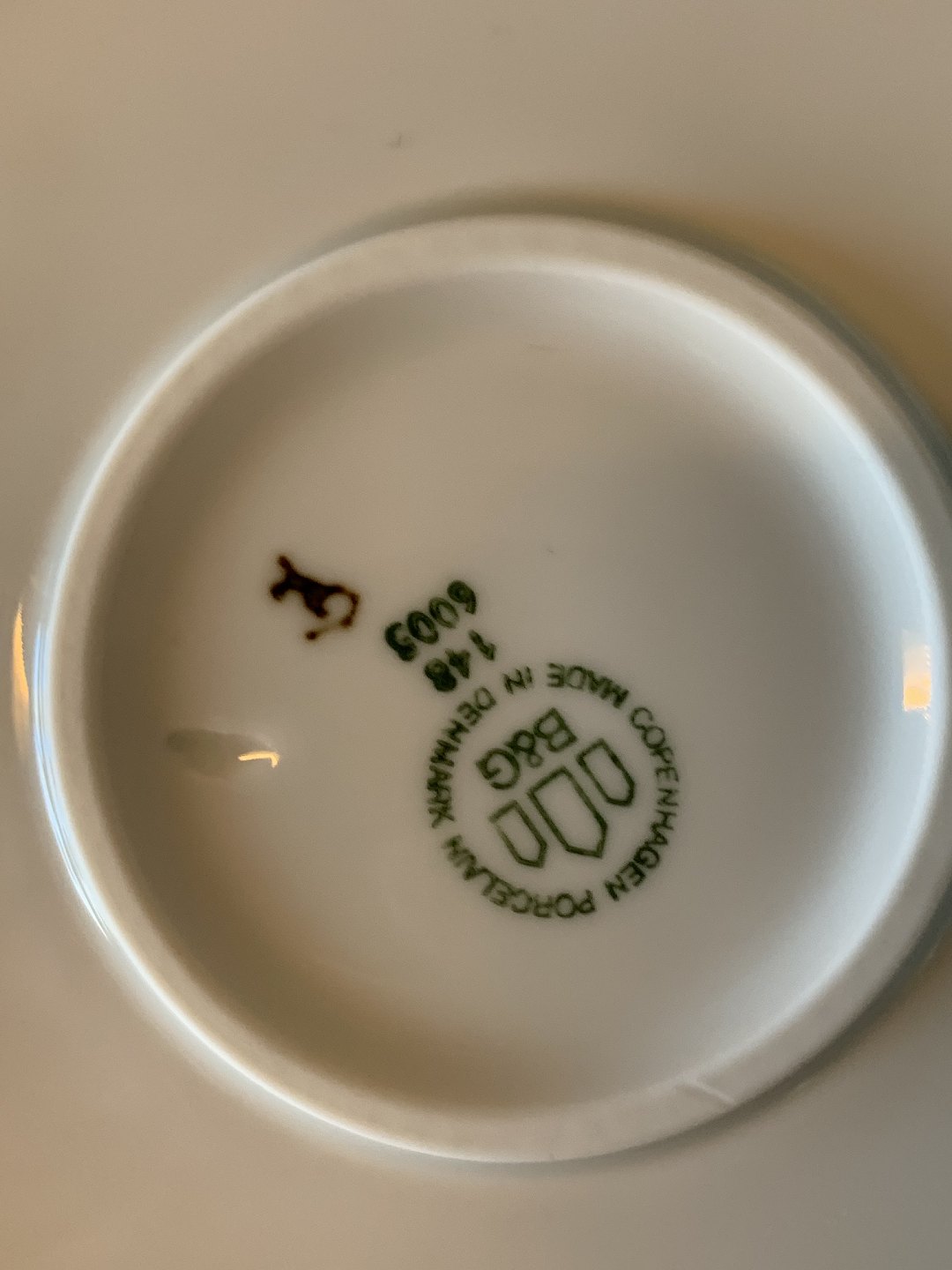 - Musselmalet, Blå Blomst, Empire, Sommerfugl, Blå Vifte, Blåkant, Guld Vifte, Flora Danica, Henriette, Cordial, Relief, Azur, Konkylie, Ursula, Ildpot og mange andre stel.