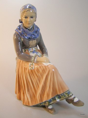 Dahl Jensen 1110 Siddende Amagerpige H: 22 cm.