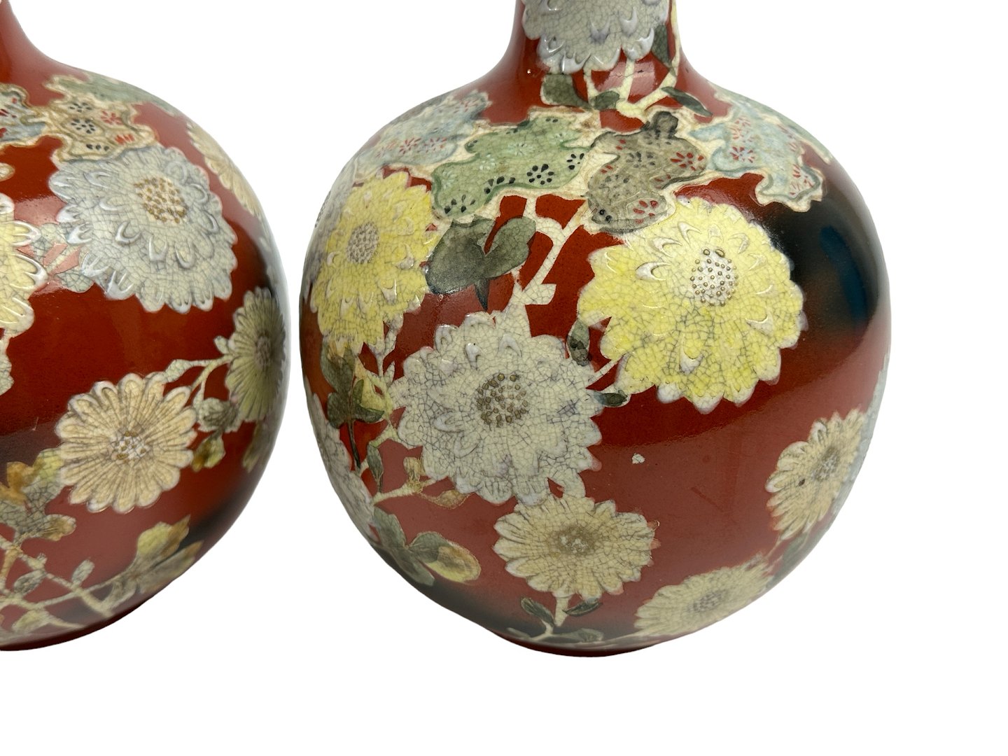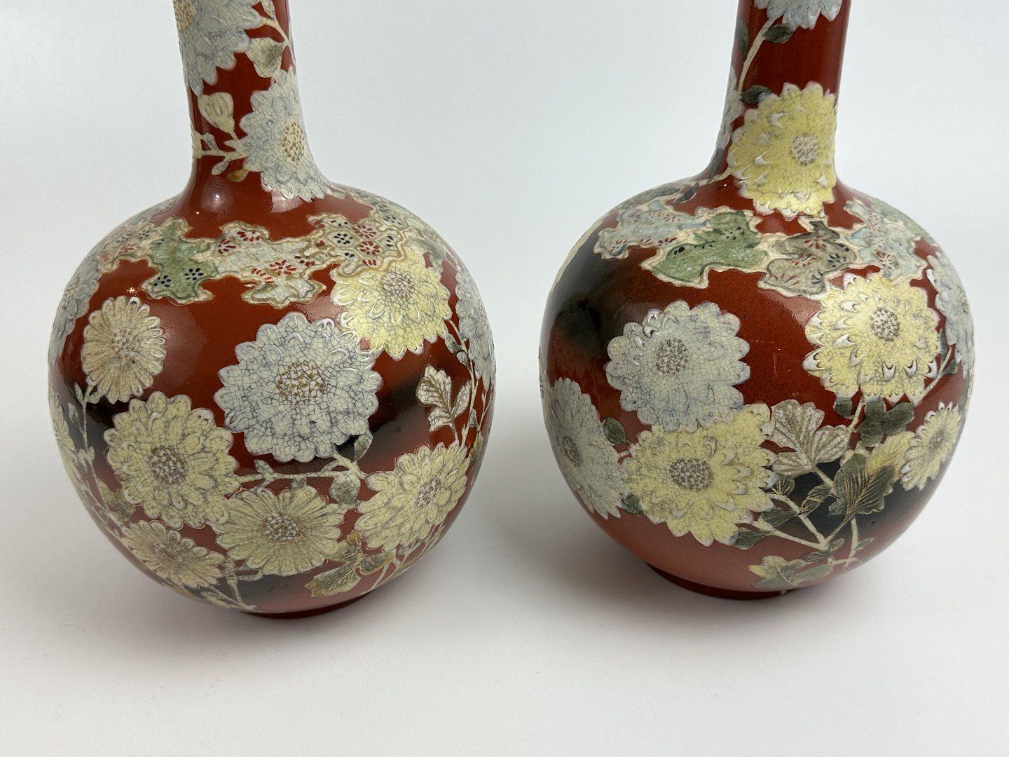 Pair of nice Asian vases, presumably Japanese. 20th century. Iron glaze with flowers. Unsigned.