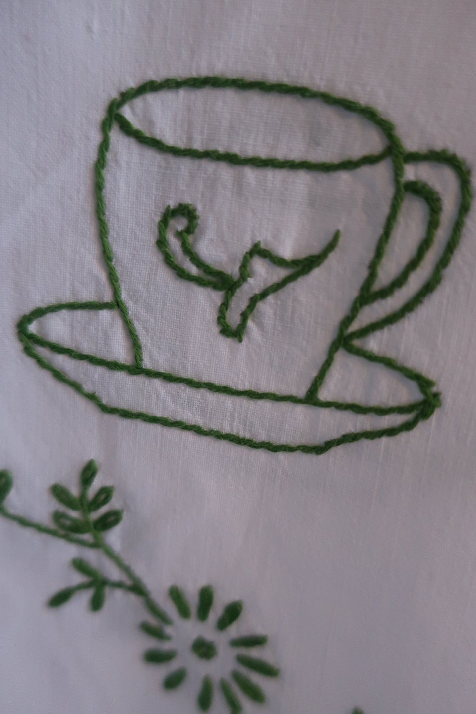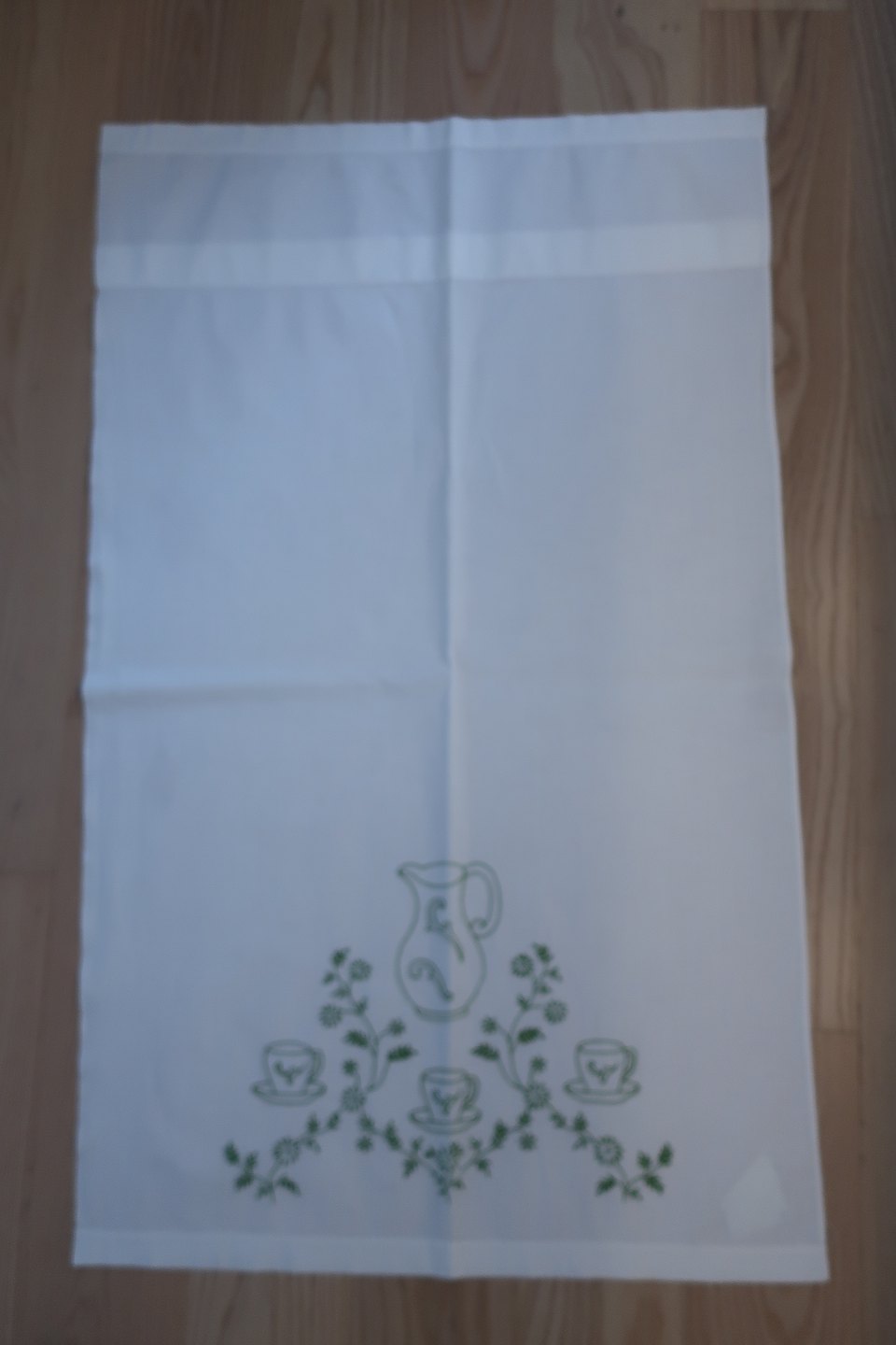 Smukt gammelt paradestykke med grønt håndbroderi, som ikke ses så tit