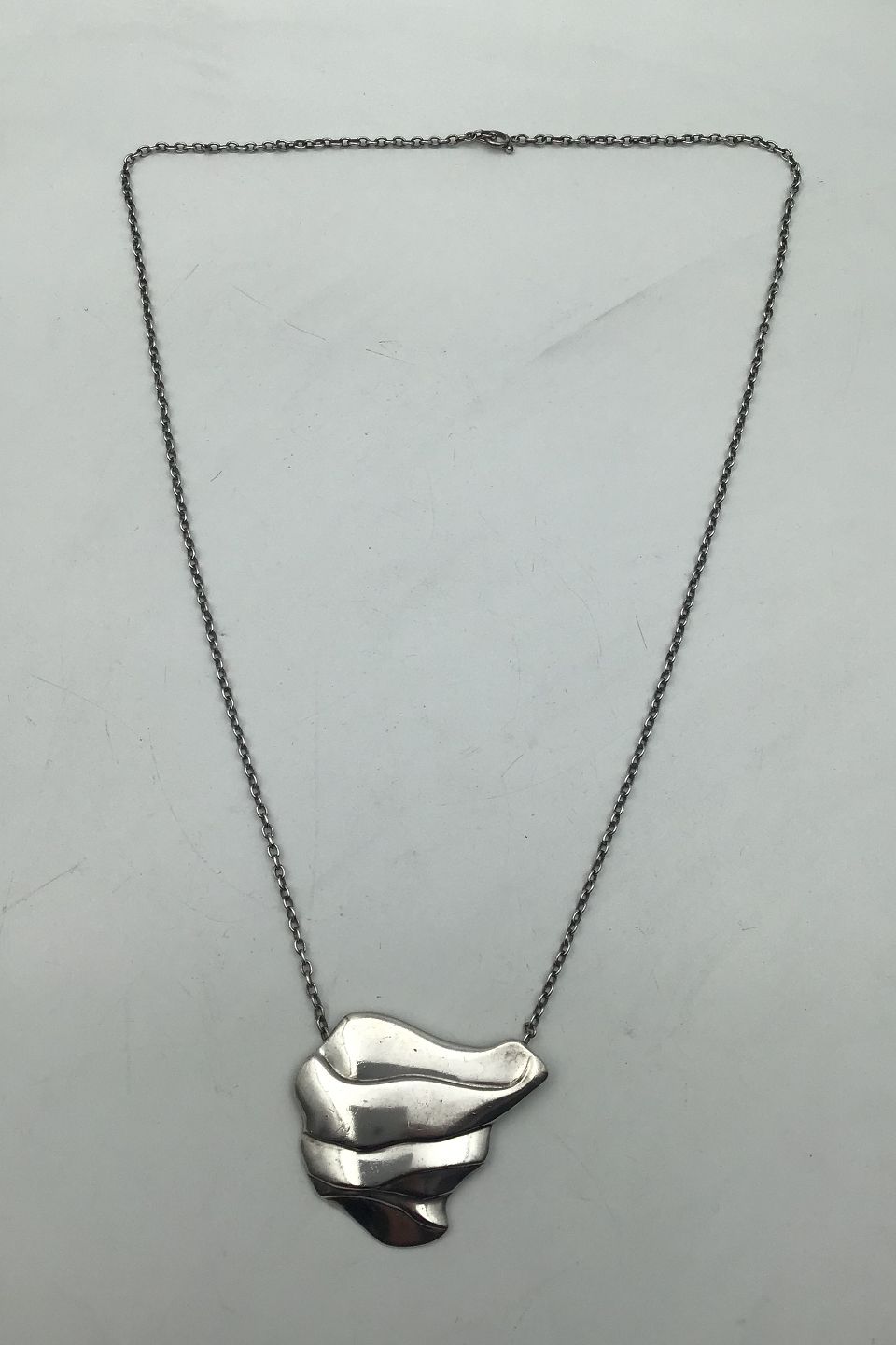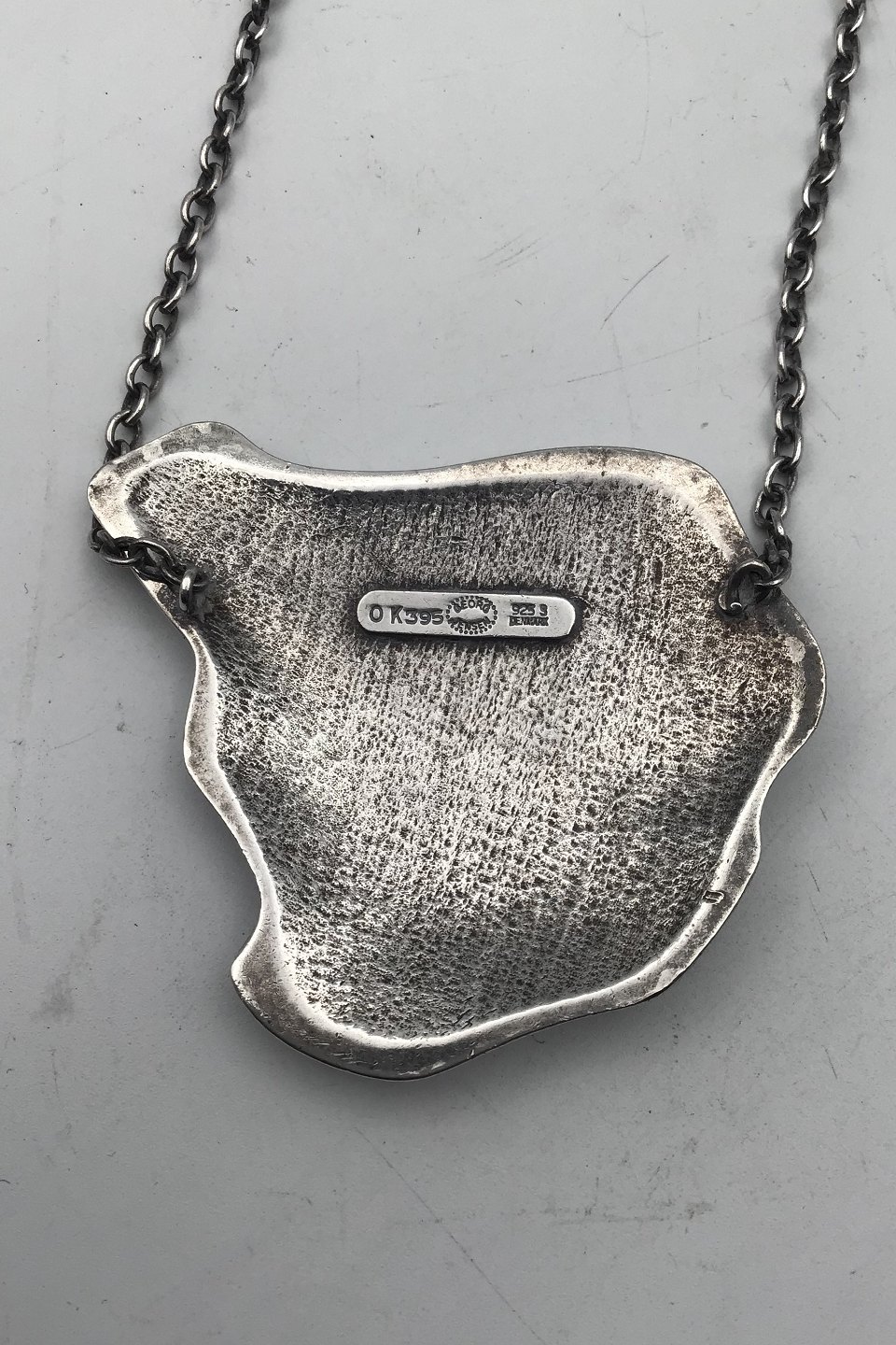 Georg Jensen Sterling Sølv Halskæde No. 395 Ole Kortzau Måler Kæde 75 cm (29.52 inch) Vedhæng 5 cm x 6 cm (1.96 inch x 2.36 inch) Samlet vægt 53 gr (1.87 oz)