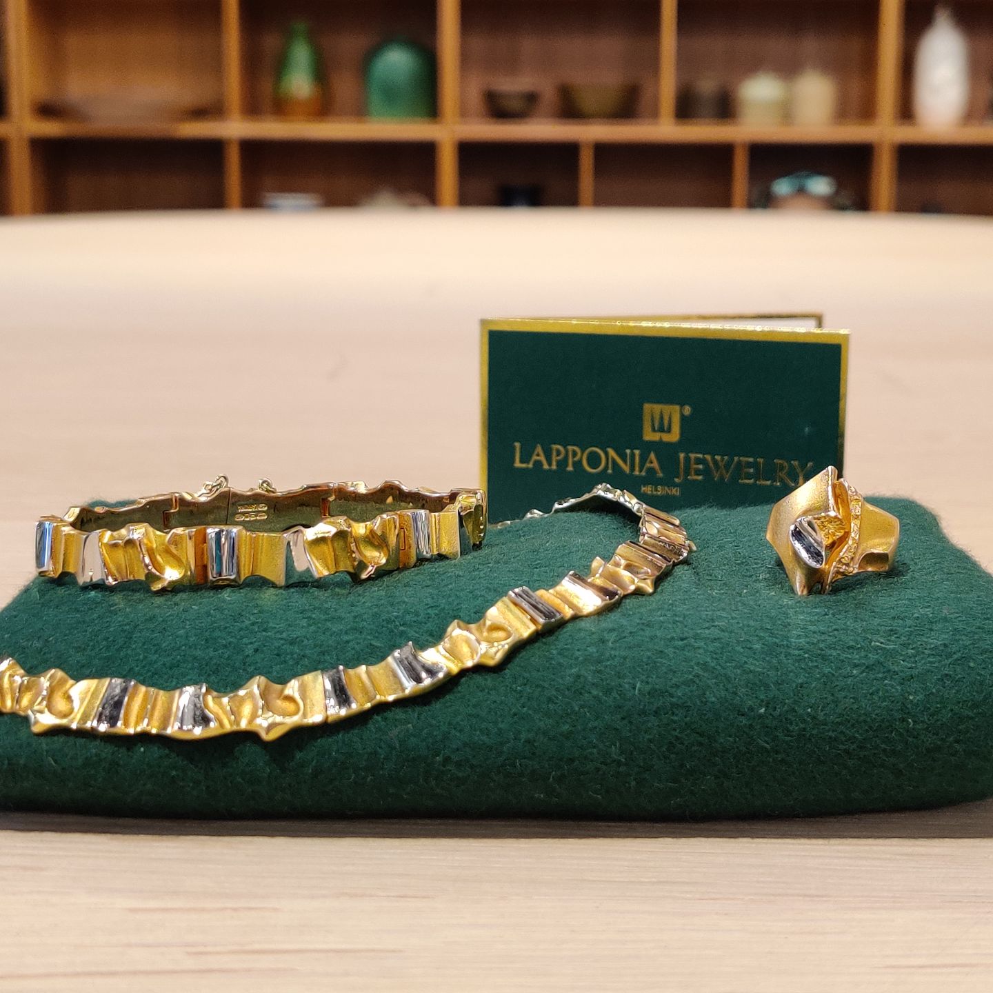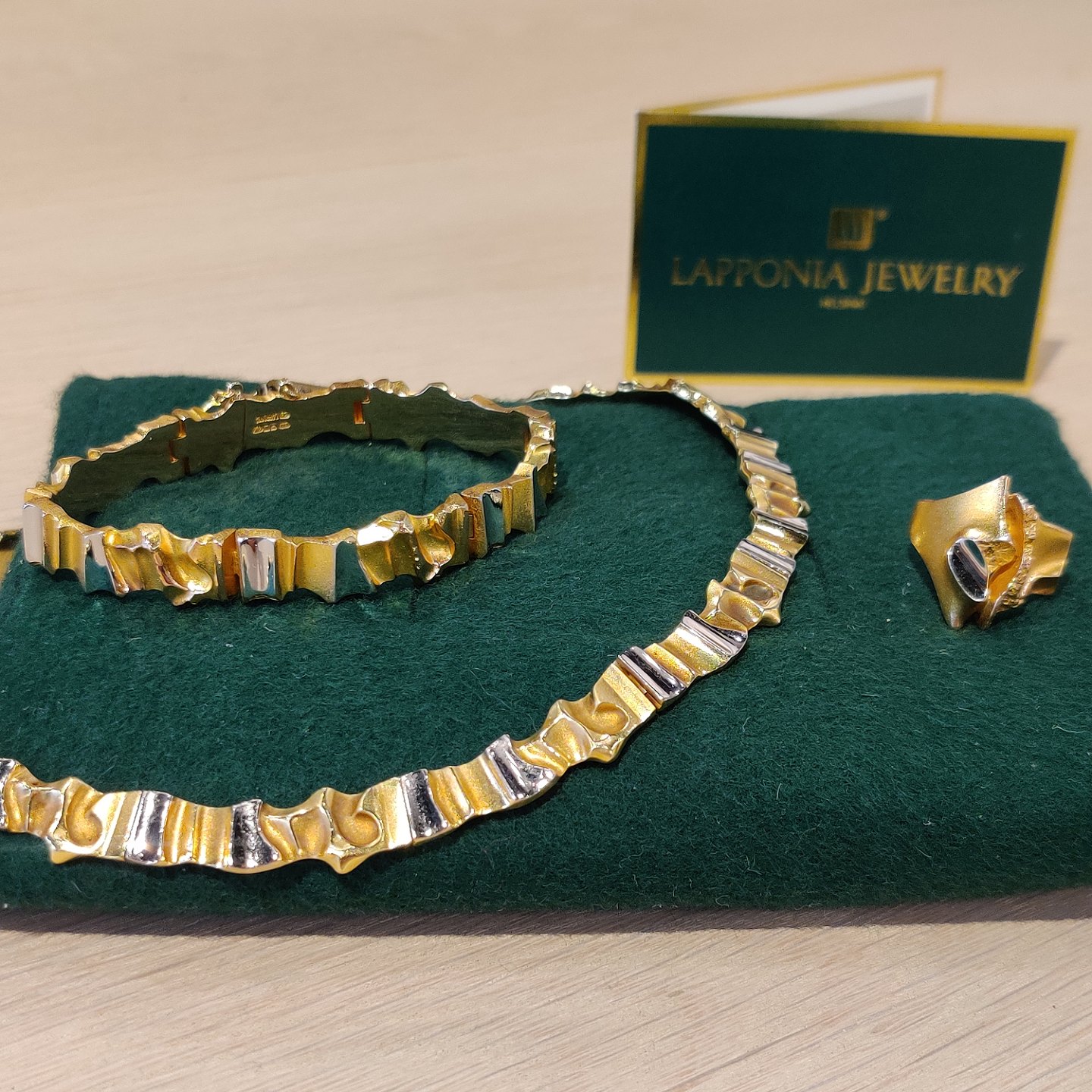Björn Weckström for Lapponia; Smykkesæt af guld med platin. Desgin af Björn Weckström, bestående af: