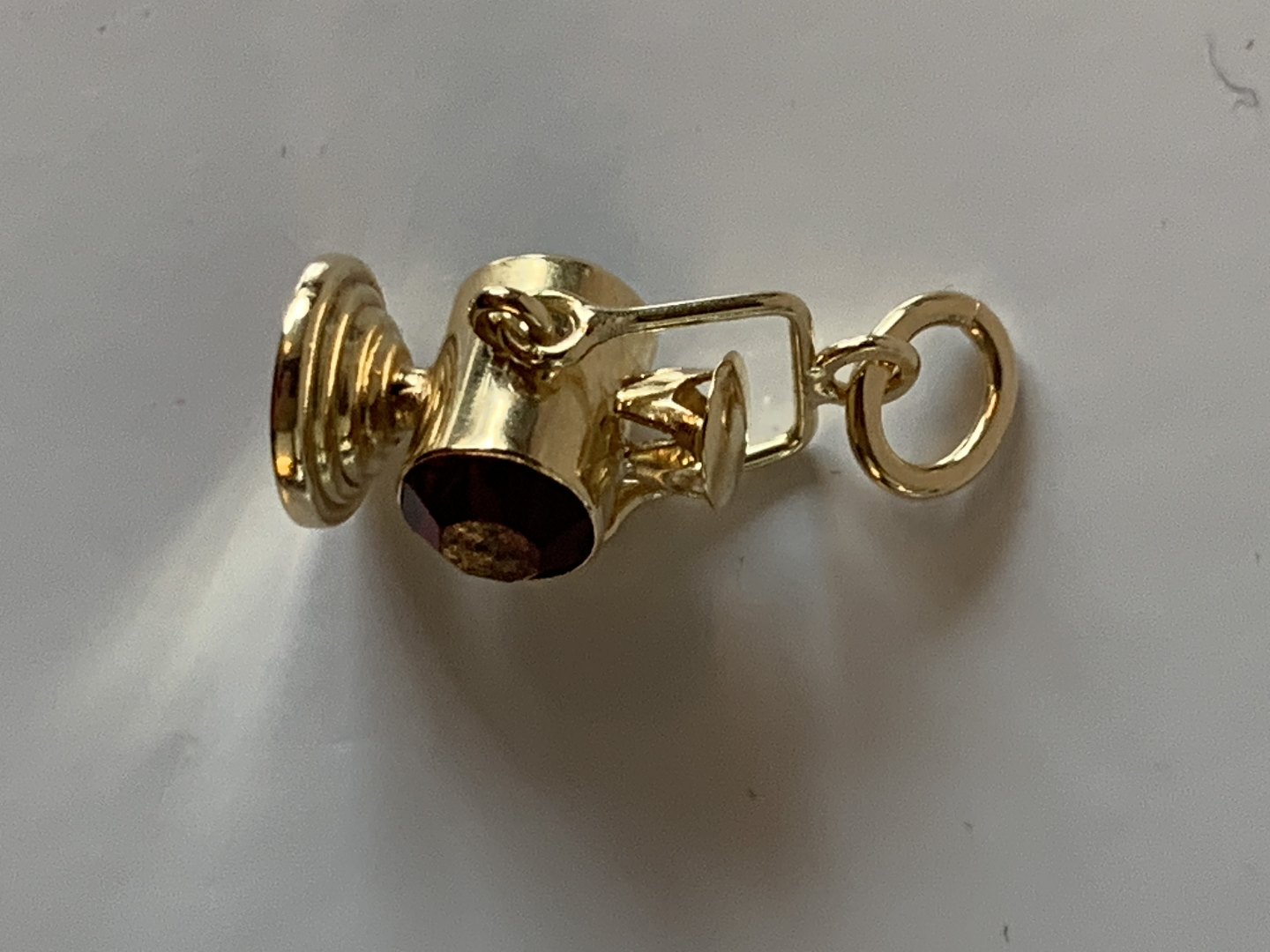 Lampe med rød og grøn sten Charms / Vedhæng i 14 karat