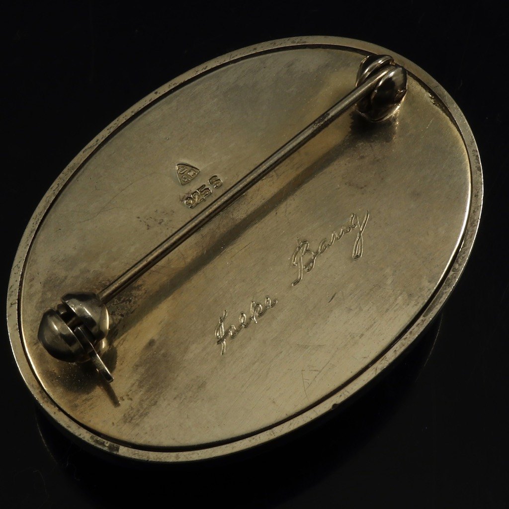 Falke Bang for Anton Michelsen. Broche i forgyldt sterling sølv med emalje.