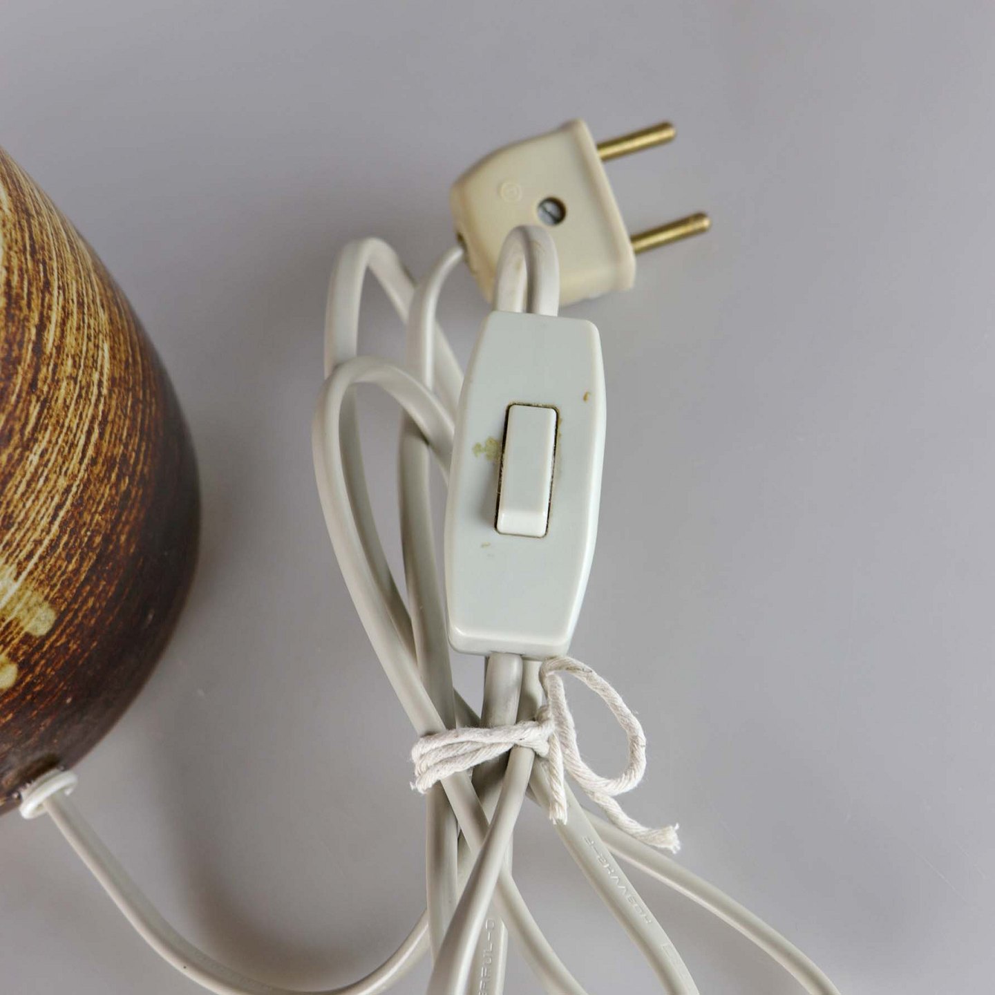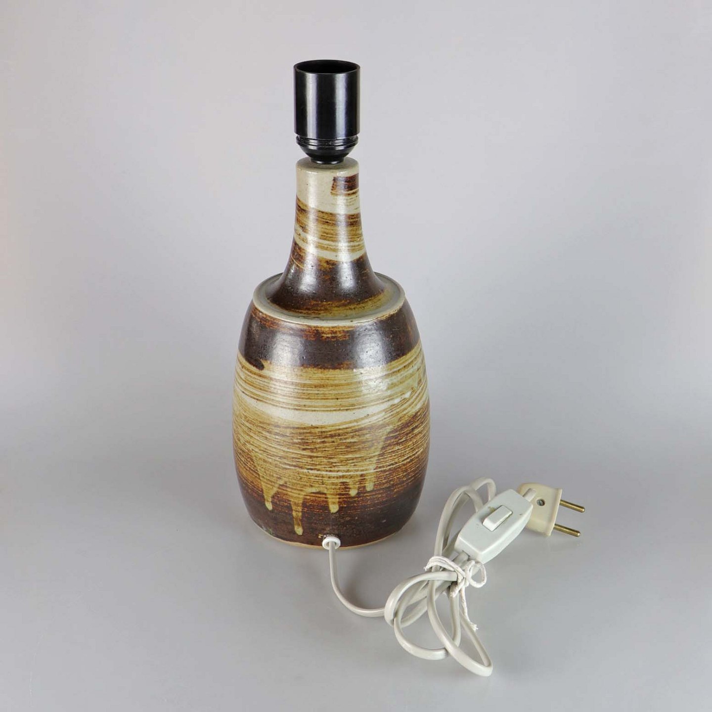 Bordlampe af stentøj i brunlige nuancer
