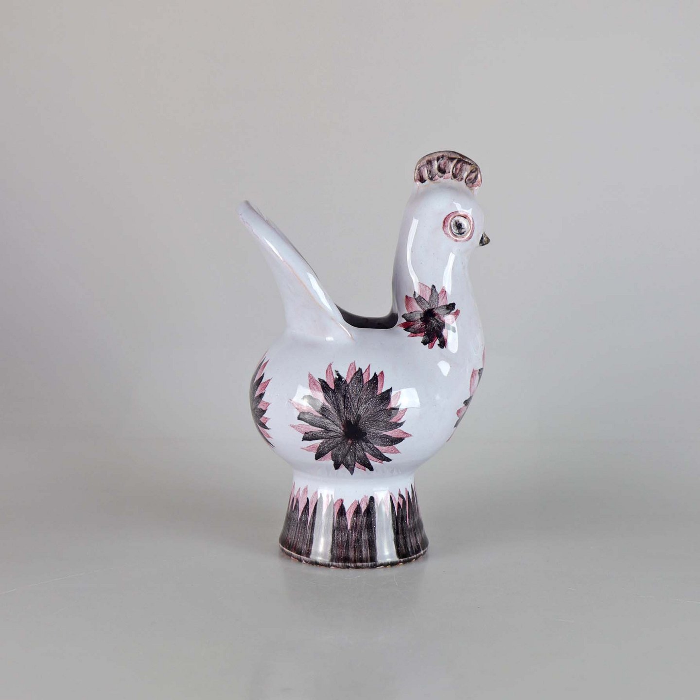 Vase i glaseret keramik formet som en høne